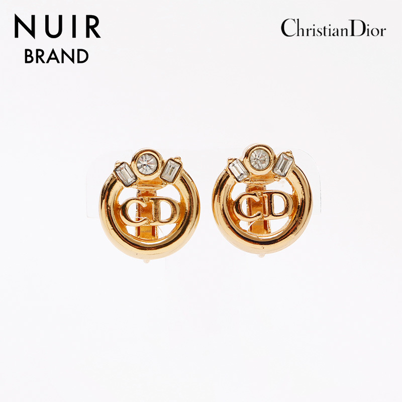 極美品 クリスチャンディオール Christian Dior ヴィンテージ CDロゴ ラインストーン イヤリング ゴールド WS9340