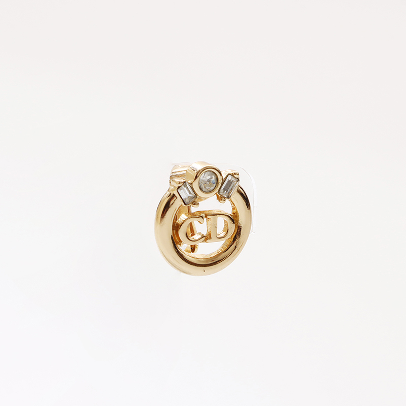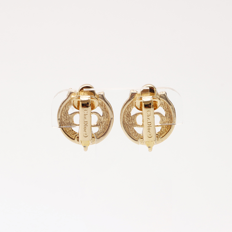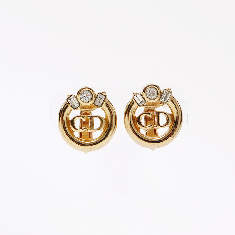 極美品 Christian Dior ヴィンテージ CDロゴ ラインストーン イヤリング ゴールド