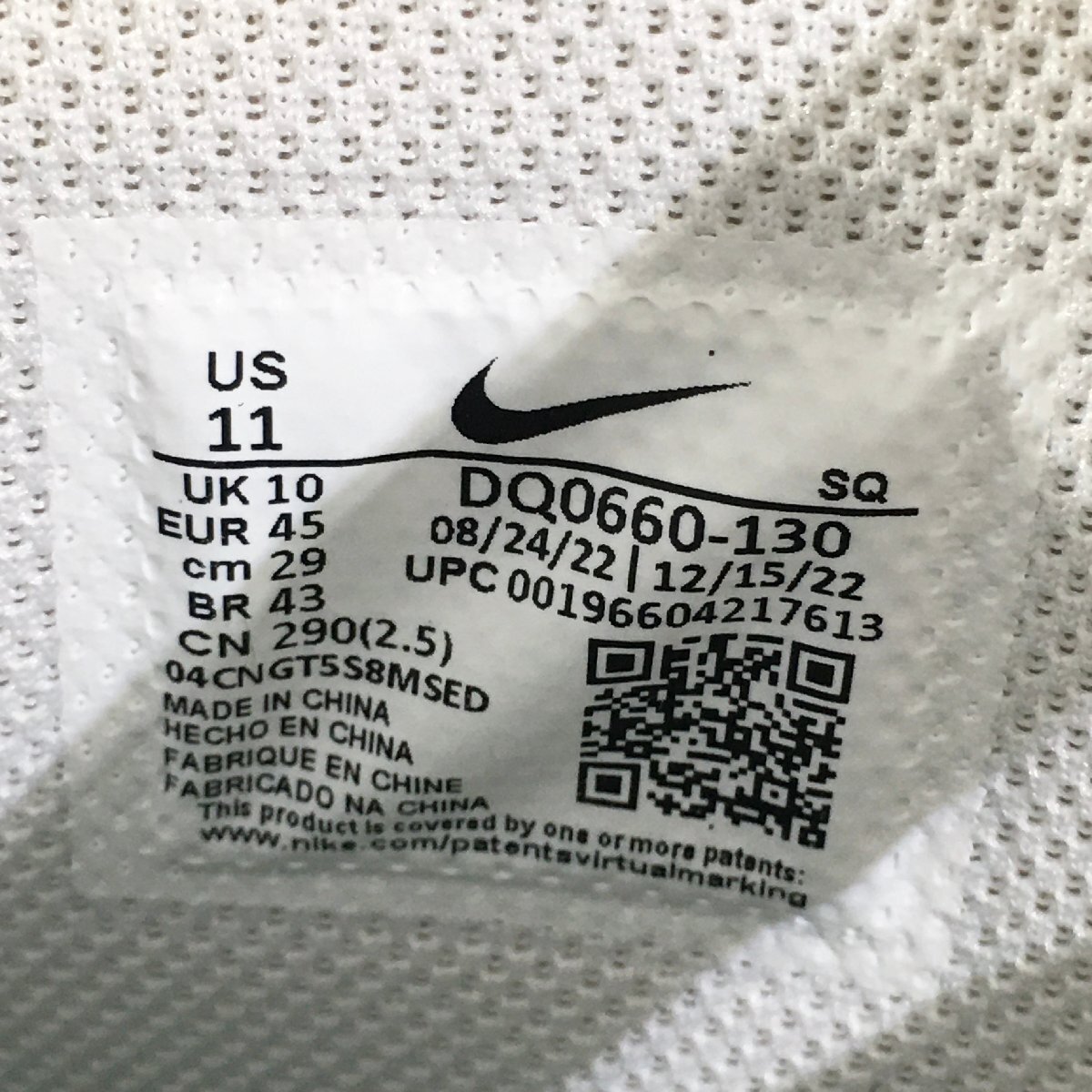 ・アッパーの状態:未使用状態です。