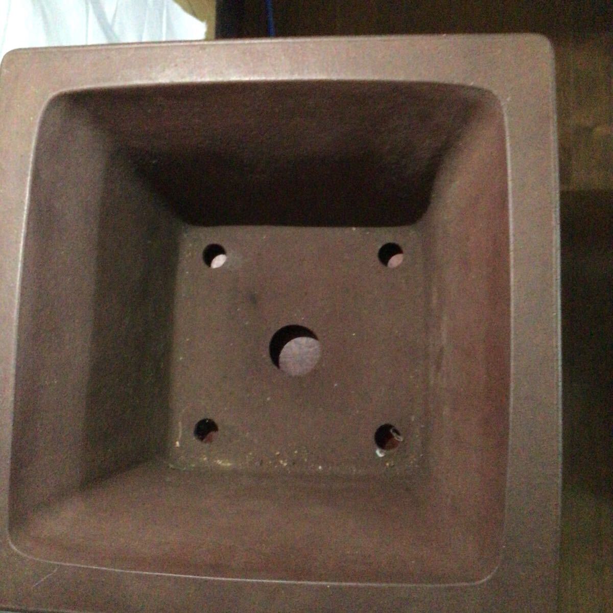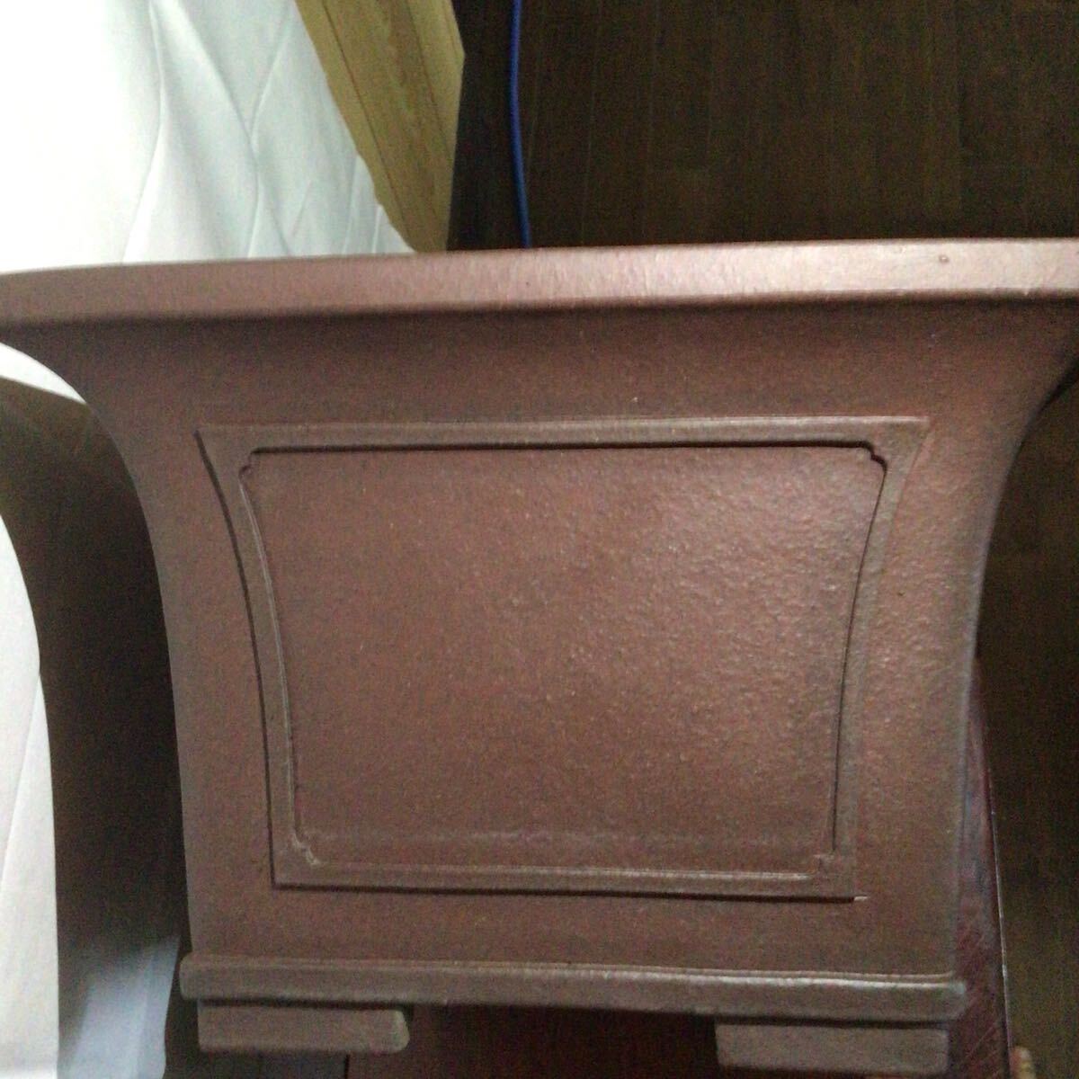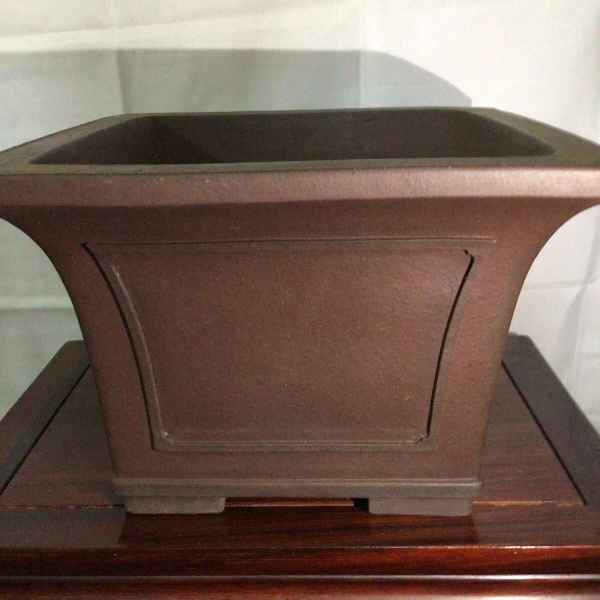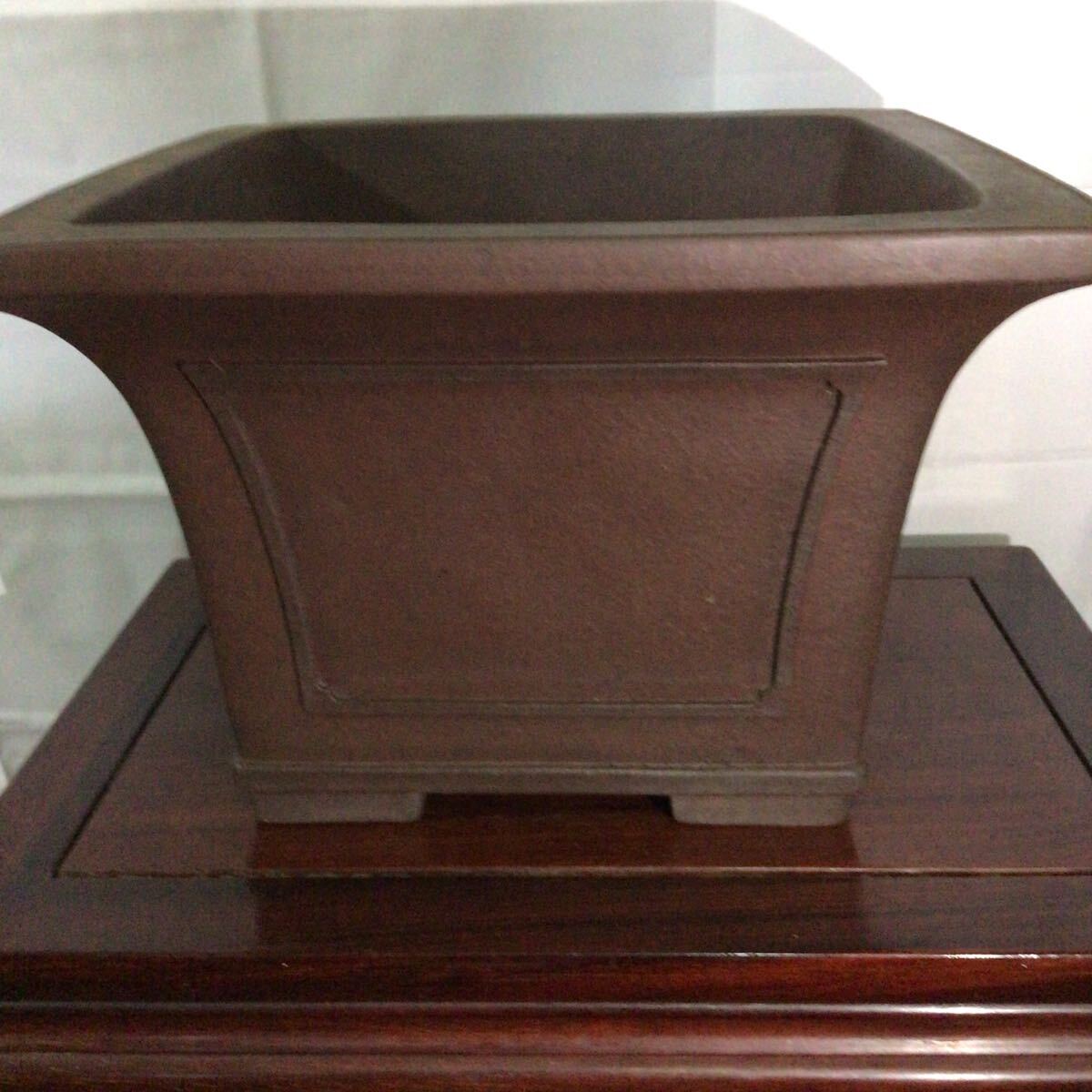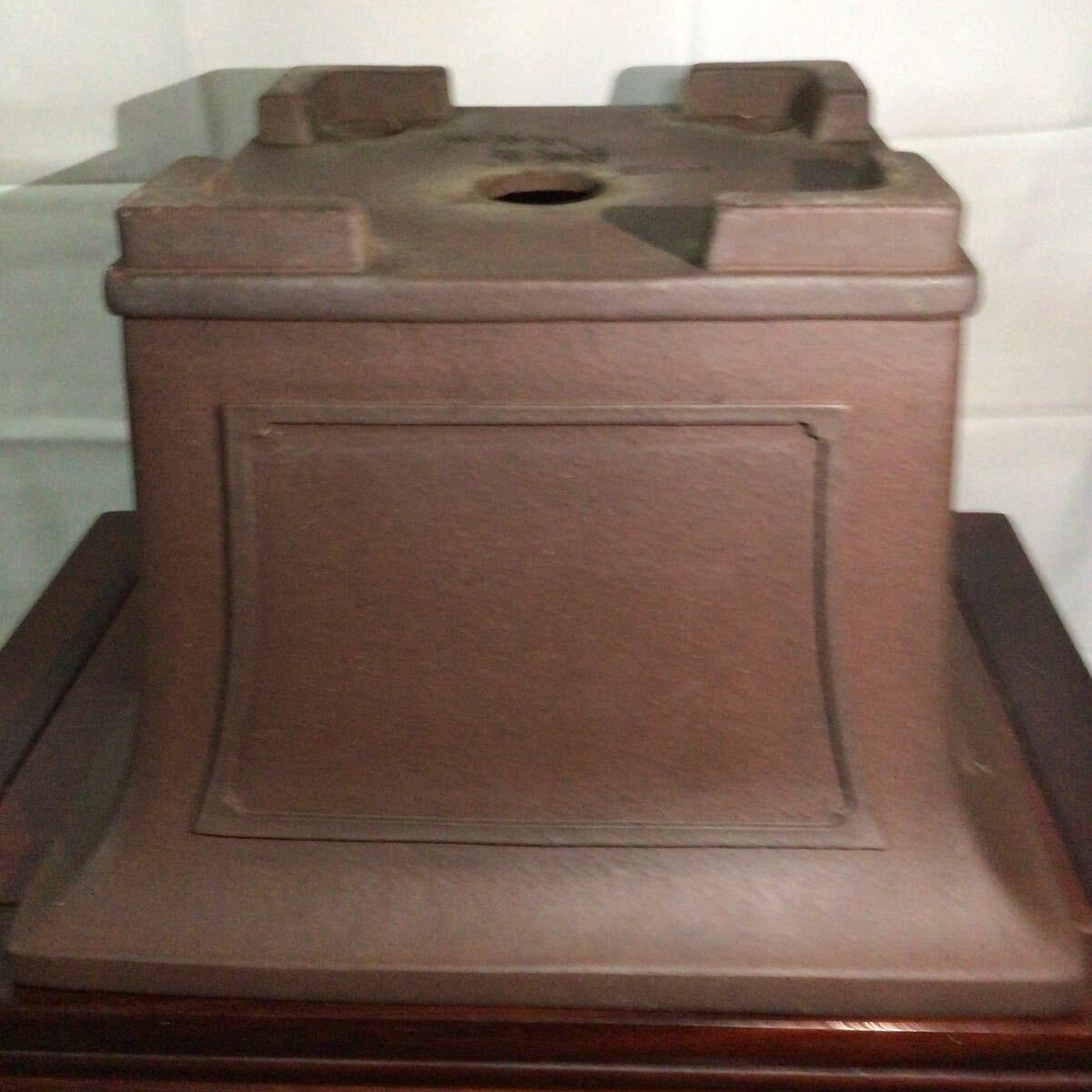 人気作家。松泉山秋外縁下帯額入正方鉢。左右30.8センチ高さ21センチ。土目発色バッグンです。画像での判断宜しくお願い致します。