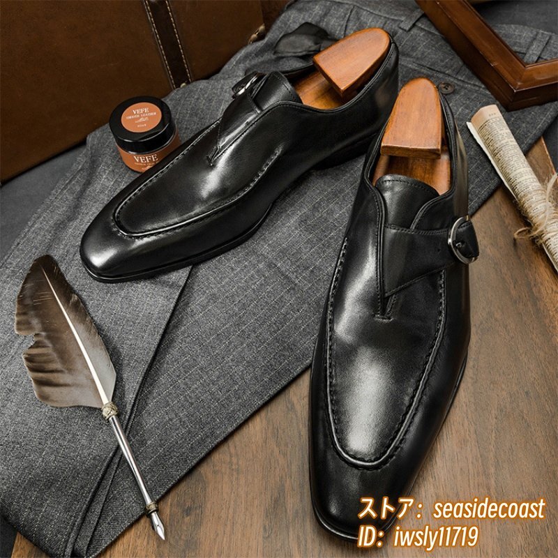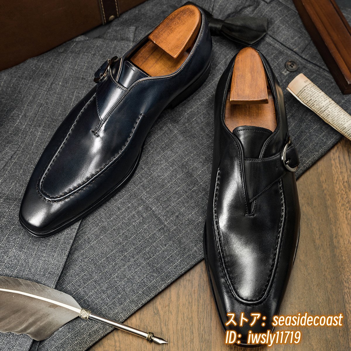超希少◆定価10万 本革 モンクストラップ レザーシューズ 最高級牛革 ビジネスシューズ 職人手作り フォーマル革靴 紳士靴 ブラック 24.5cm