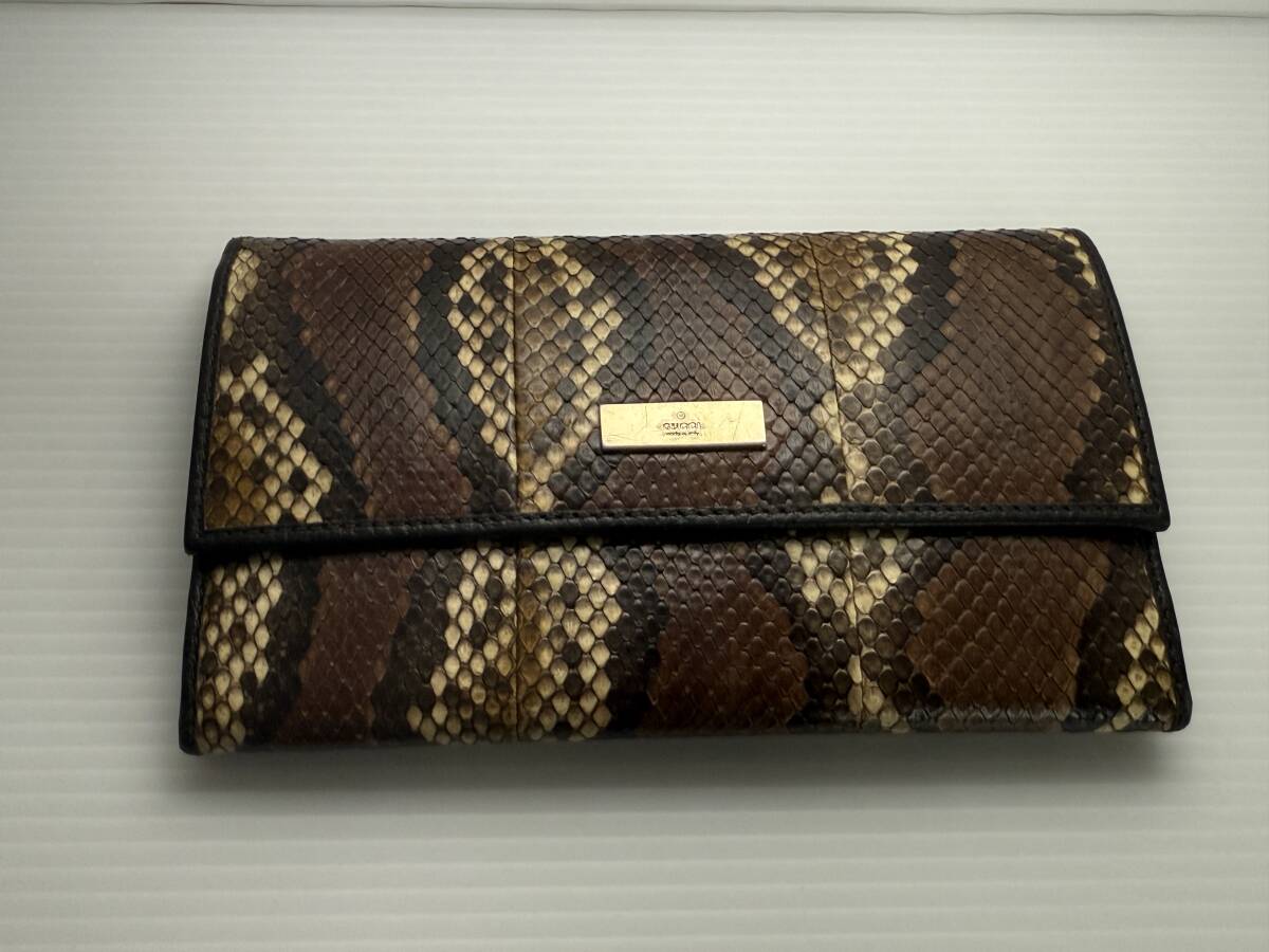 グッチのパイソンの三つ折り長財布です。