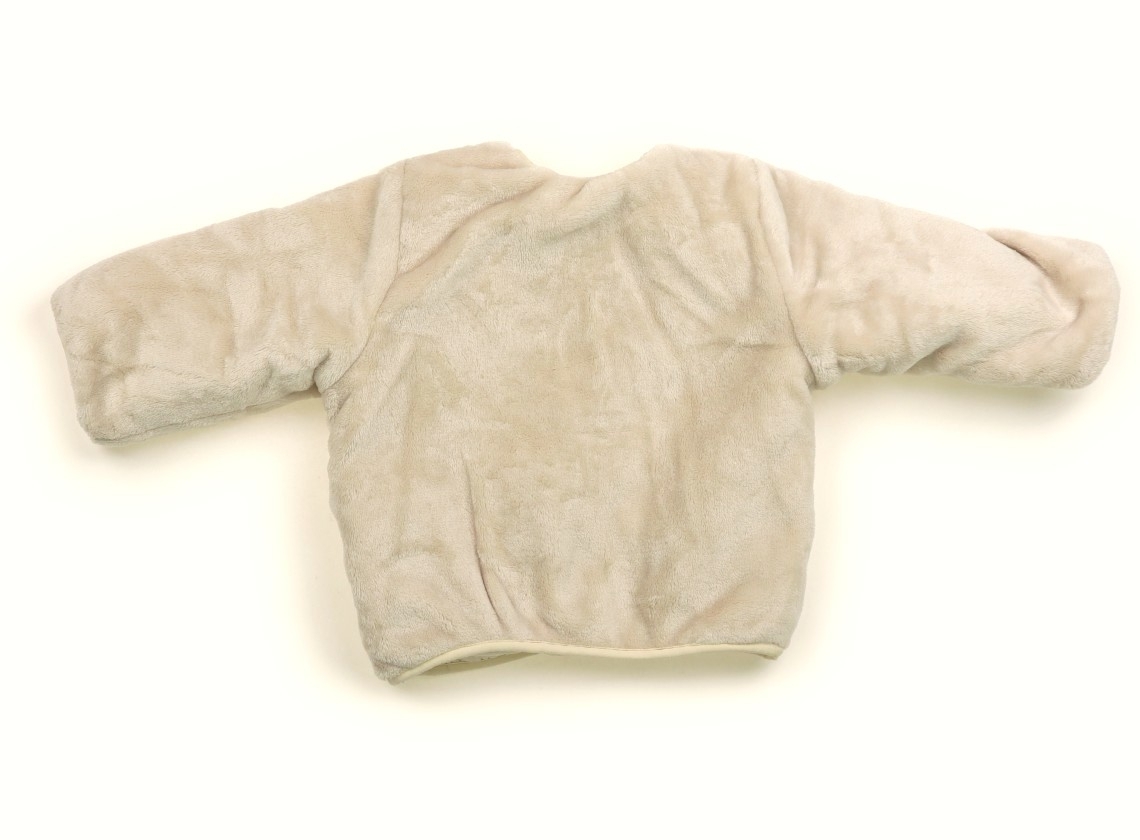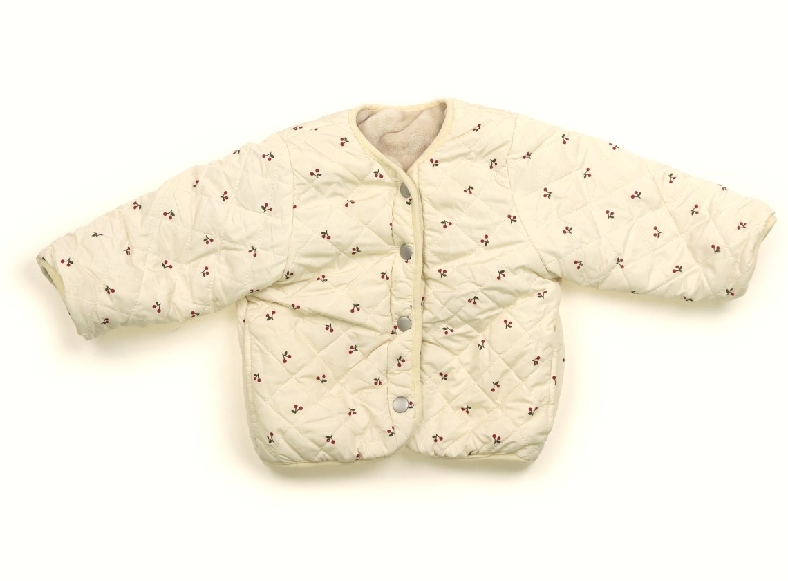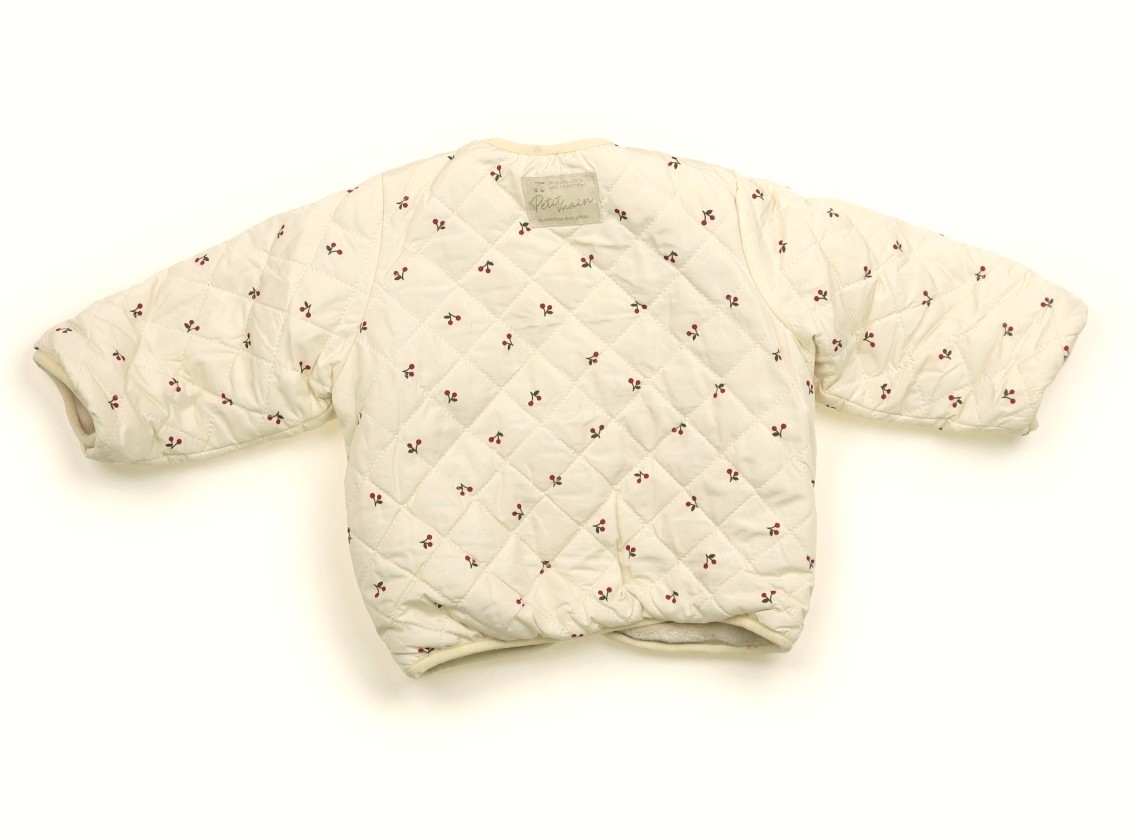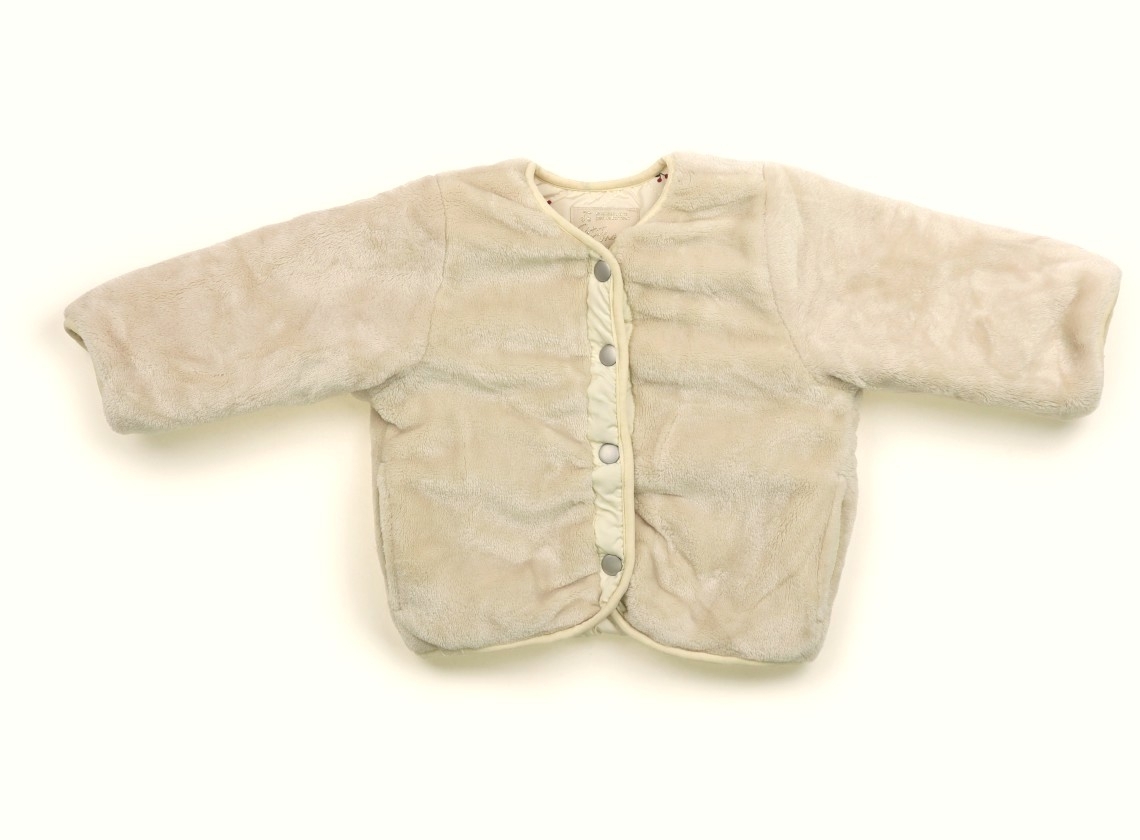 ポリエステル。キルティング生地とボア生地のリバーシブルで着られます。中綿の暖かいアイテムです。キルティング生地の袖や袖口に薄汚れや薄いシミが見られます。まだお使いいただけそうです。
