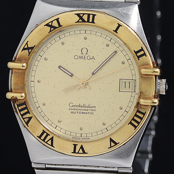 1円 稼働 オメガ コンステレーション YG×SS AT/自動巻 ゴールド文字盤 メンズ腕時計 4147600 10DIT SMZ
