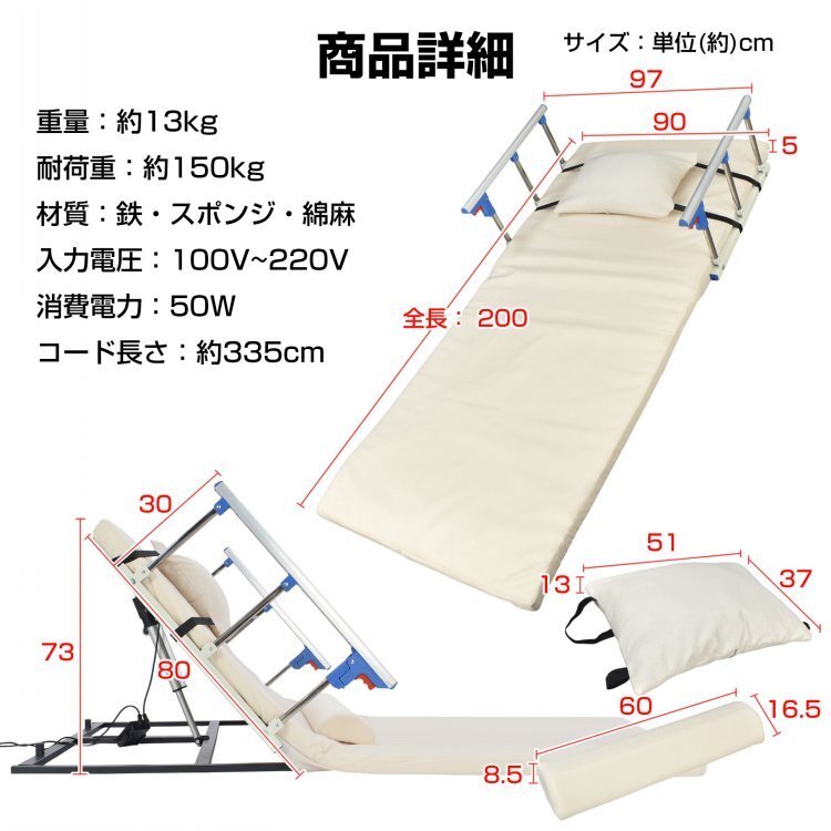送料無料 電動介護マット リクライニングマット 介護用 介護ベッド 乗せるだけ 角度調節 リクライニング 起き上がり サイドレール nc004-l