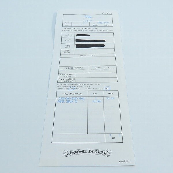 【インボイス原本】CHROME HEARTS/クロムハーツ PAPER CHAIN/ペーパーチェーン ネックレス 20インチ /000 | |||||||||||||||||||||||||