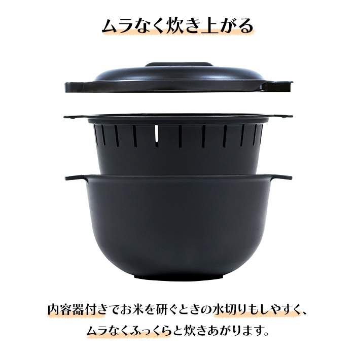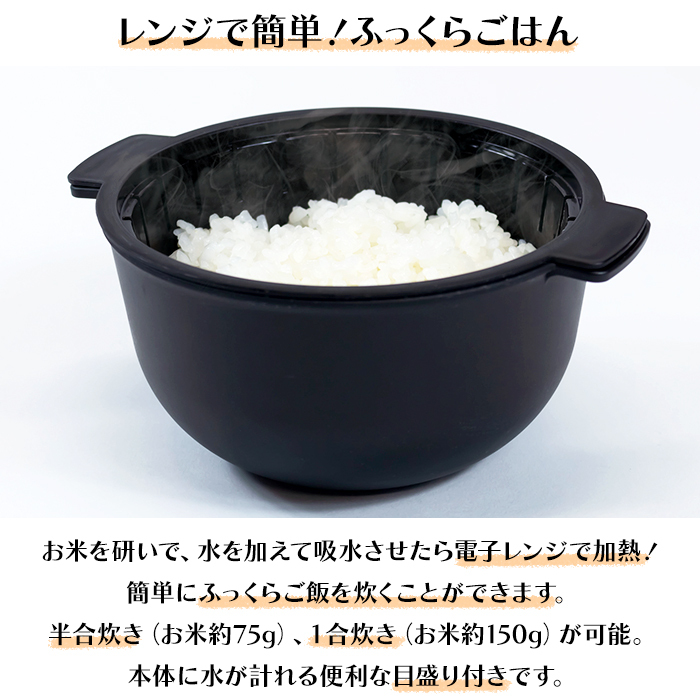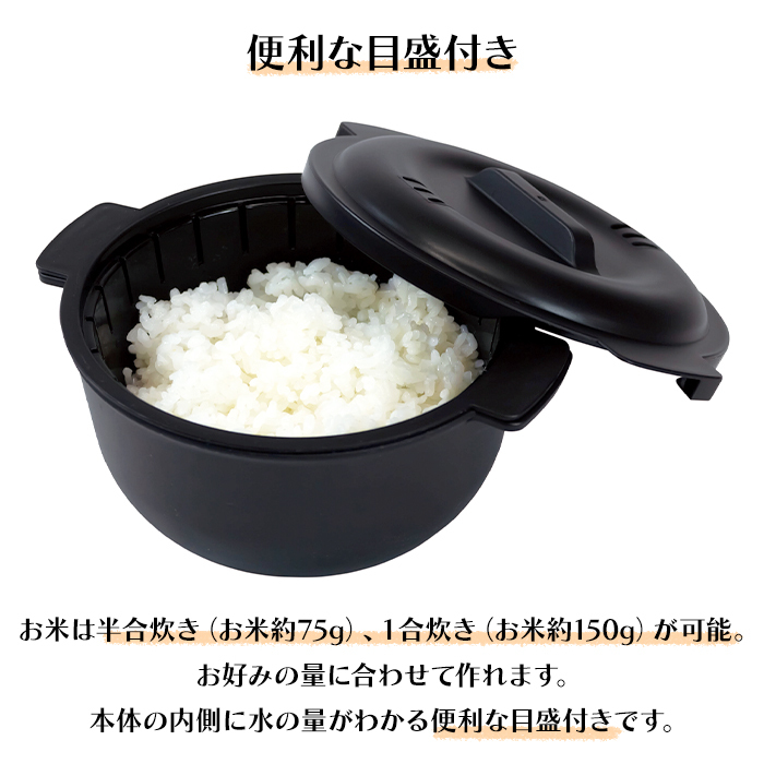 お米を研いで水を入れたら、そのまま電子レンジで簡単に一合炊きができる便利なアイテムです。