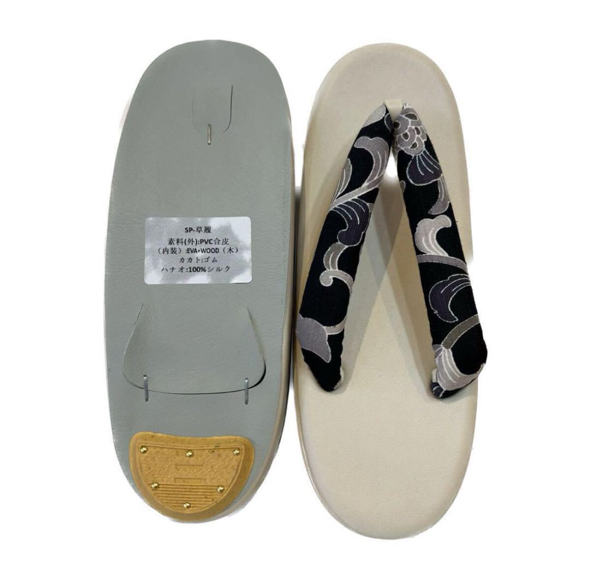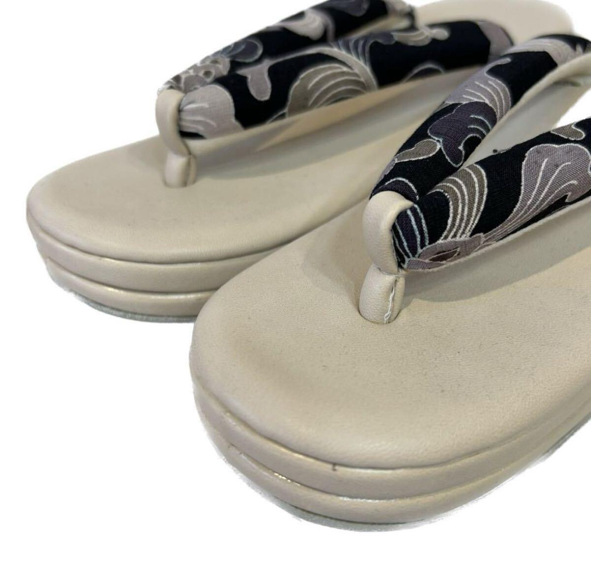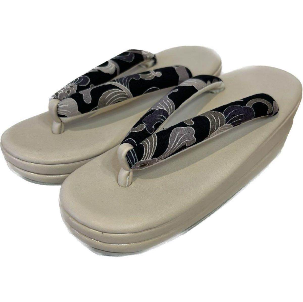 ベージュの台にしょうざんらしい模様をあしらった鼻緒が上品でお洒落なデザインです。