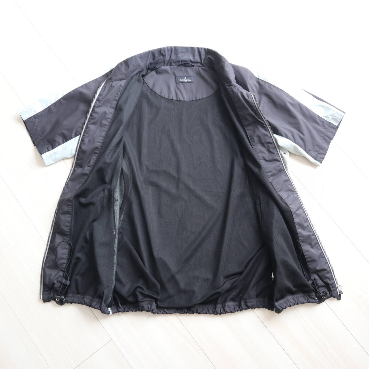 撥水機能の軽量ポリエステル素材、半袖フルジップウィンドジャケット