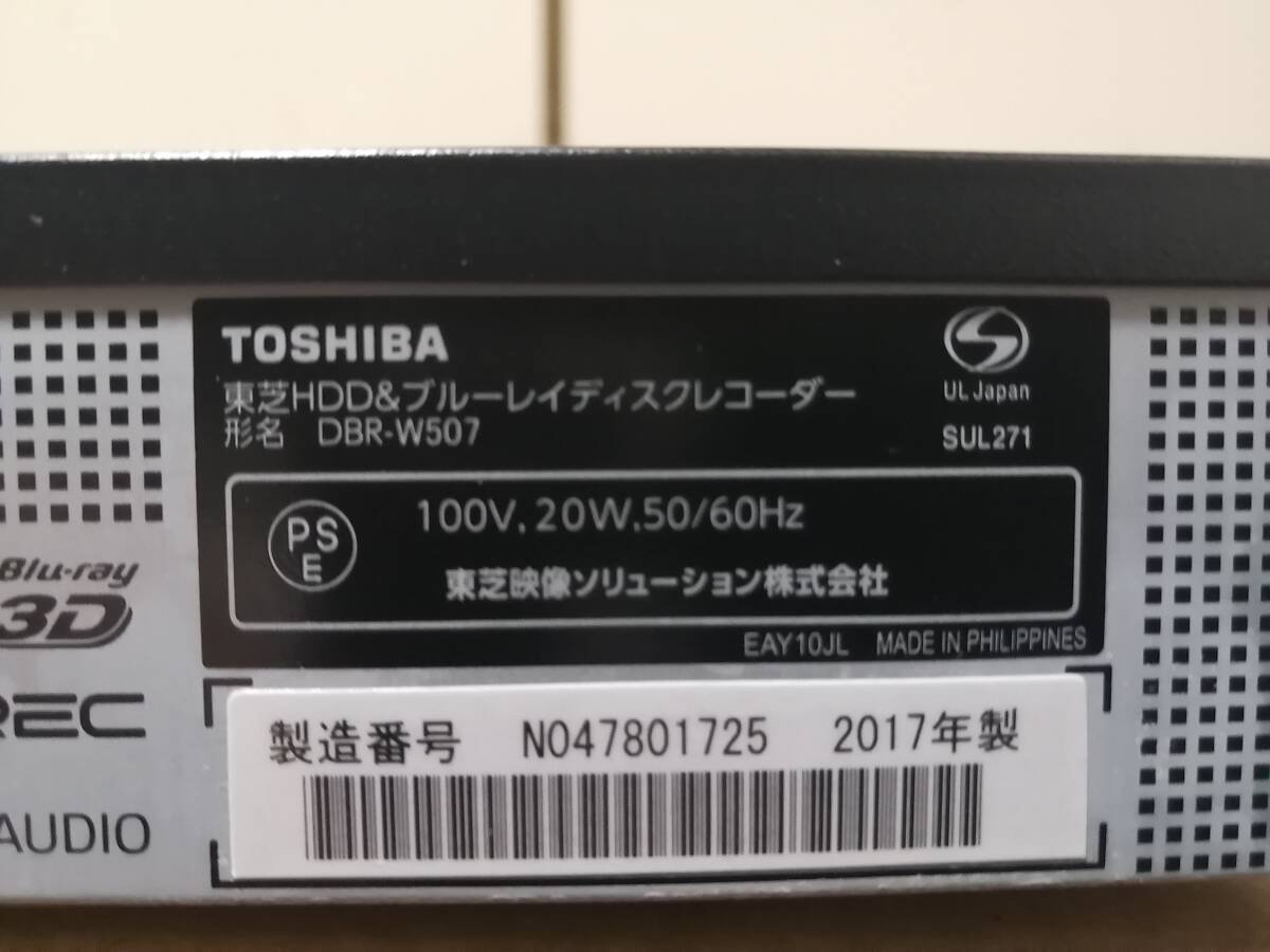 送料80S 東芝 HDD& BD DVD レコーダ-DBR-W507 HDDを2TBに換装 録画時間4倍の184時間 リモコン カード付 分解掃除 HDD検査 整備済