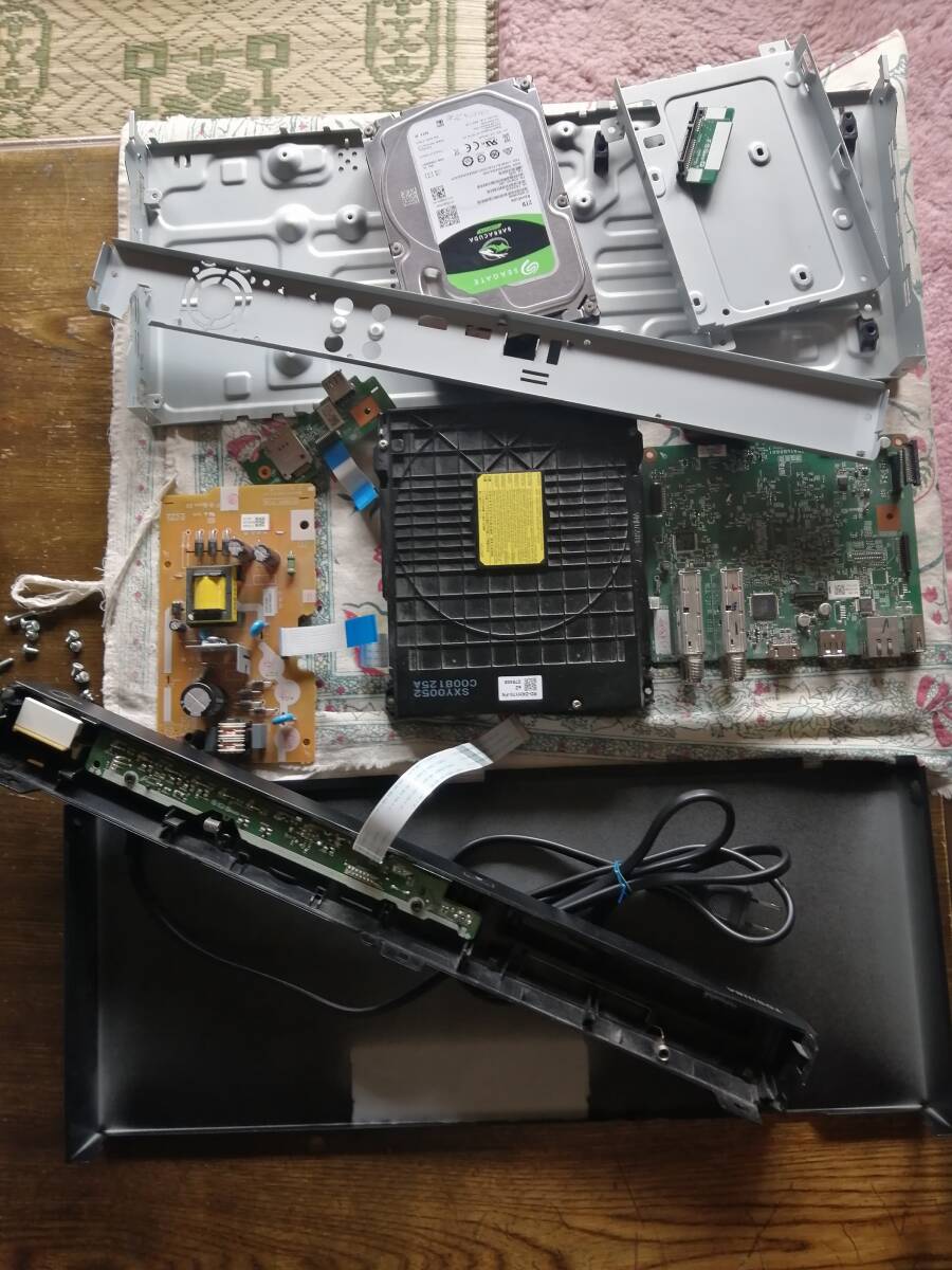 東芝TOSHIBA REGZA DBR-W507 HDD&ブルーレイDVD ハイビジョンレコーダ-で元の500GB HDDを2TB HDDに換装した本体と純正リモコン(SE-R0466)とミニB-CASカードです。