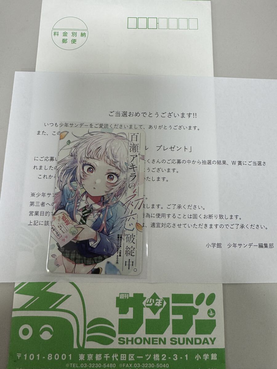 抽プレ 百瀬アキラの初恋破綻中 図書カード 週刊少年サンデー 懸賞当選品