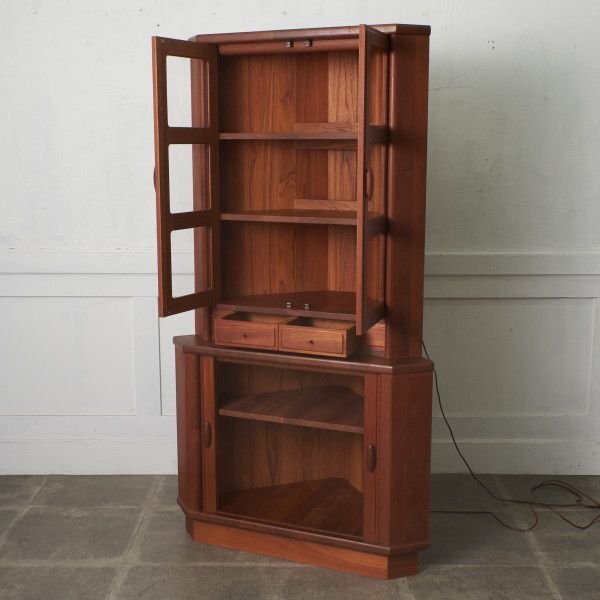 チーク材の美しい木目と丸みを帯びた柔らかなフォルムが印象的なコーナーキャビネット。下段は作るのに手間がかかるため採用されることが珍しい蛇腹扉となっています。省スペースで開閉できる実用性も兼ね備えた、デンマーク職人の高いクラフトマンシップと技術が集約された妥協のないハイクオリティな一品です。