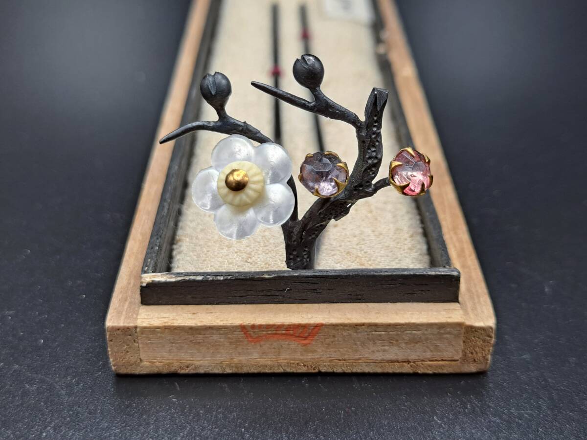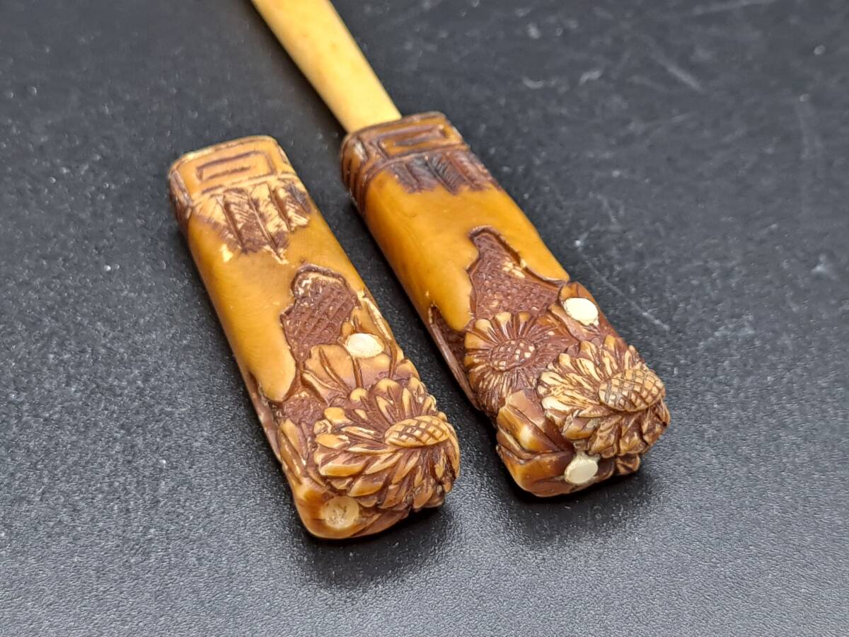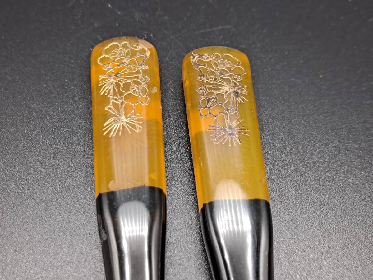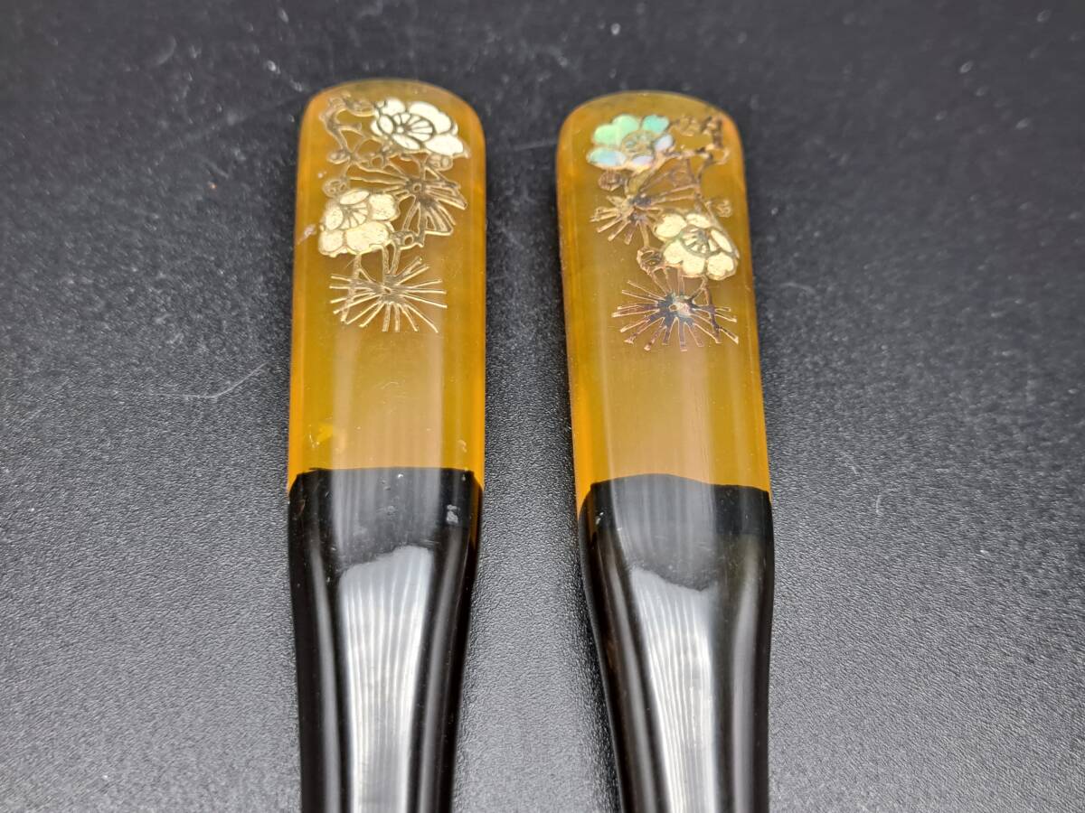 【16】アンティーク簪・笄・櫛5点「梅」意匠簪・「本鼈甲に蒔絵」&「光寿銘」笄「蜜柑」彫金簪・本鼈甲に金漆櫛 | ||||