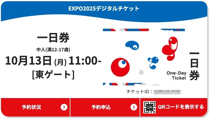 大阪・関西万博 10月13日 閉幕日 東ゲート 11:00 入場チケット 中人1枚 未使用