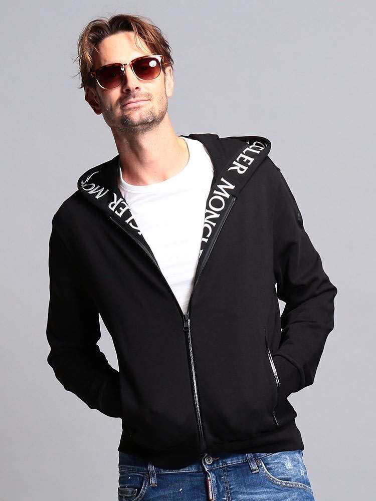 2022 モンクレール ラインロゴ刺繍 パーカー ブルゾン ブラック MONCLER 国内正規品 #A4