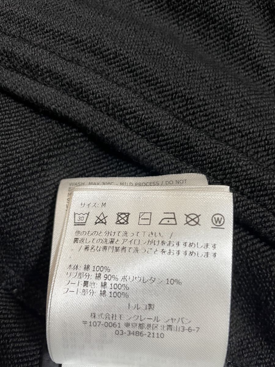 モンクレールのパーカー、サイズM、ブラック、美品、認証タグあり。