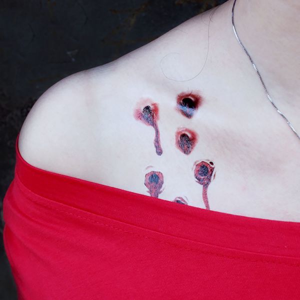 たっぷり使える10枚セット!! ゾンビ タトゥーシール 特殊メイク ハロウィン 仮装 コスプレ (縫跡3枚 縫い傷3枚 切り傷2枚 穴傷2枚)
