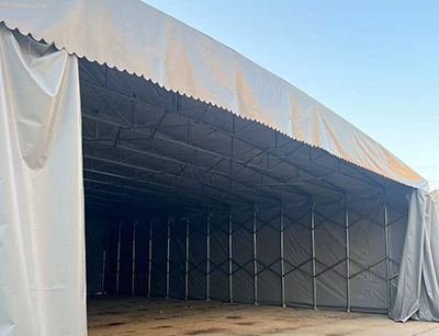 6m×10m×4m 伸縮式移動テント倉庫|四面生地(カーテン 1 面)荷捌場・駐車場用