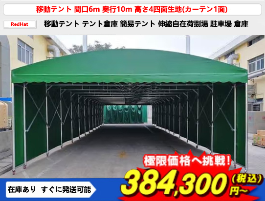 移動テント倉庫 6m×10m×4m 四面生地(カーテン 1 面)伸縮自在 荷捌場・駐車場用「6m×10m」駐車場用 移動テント倉庫