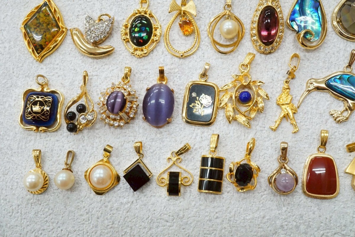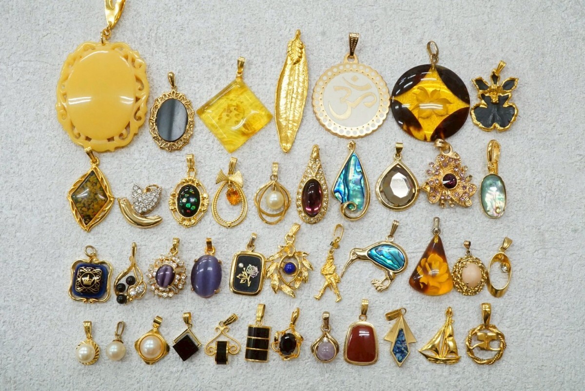 D840 海外製含む ゴールドカラー ヴィンテージ ペンダント 40点セット アクセサリー アンティーク 大量 まとめて おまとめ ネックレス