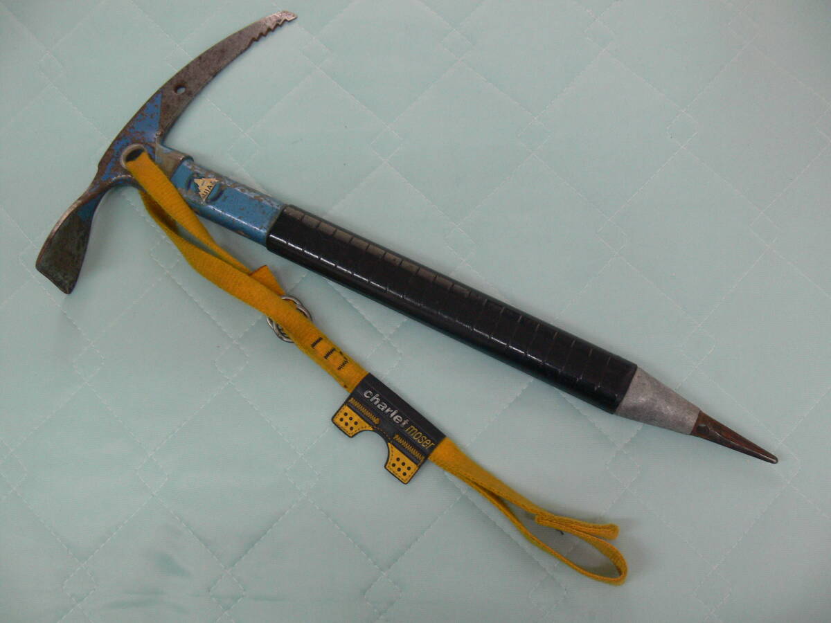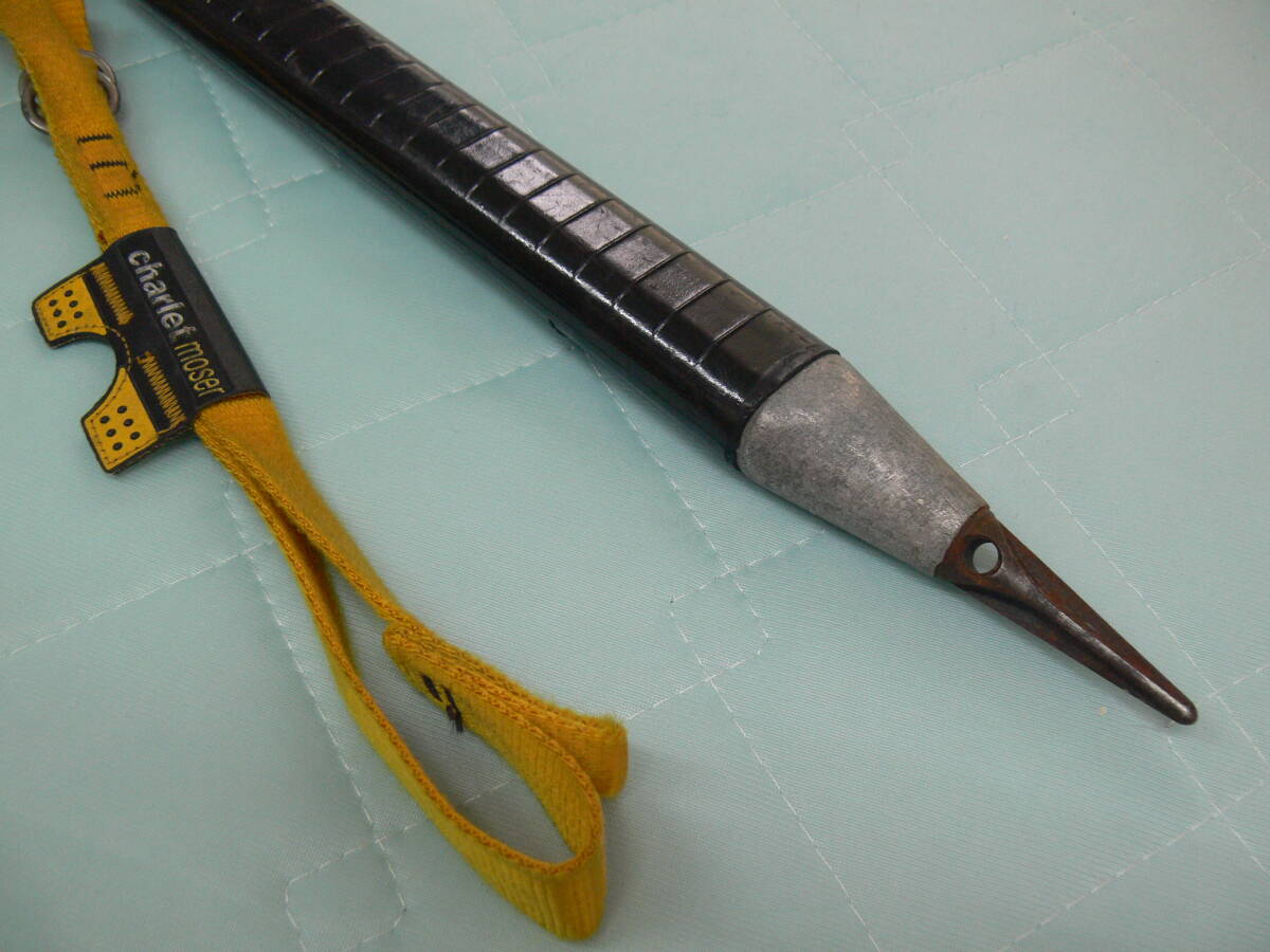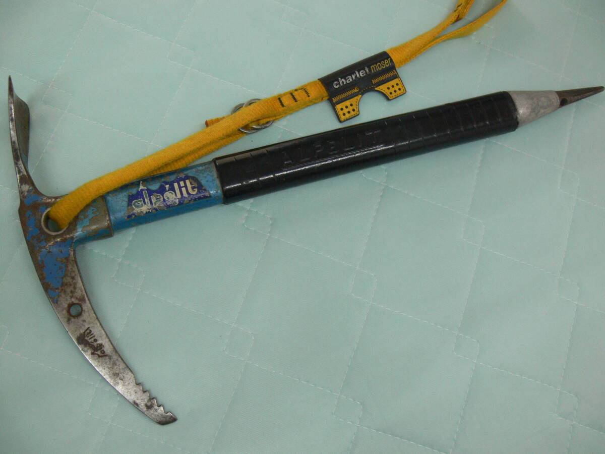ピオレドメゾン アルペリットの50cmピッケルです、メタルシャフトとブレード部の接続はどのメーカーより頑丈です。シャフトは当時有名なコンコルドの機体と同じ材質が使用されて居る、リーシュはシャルレのが付いています。50cmのシャフトは急な岩場での使用に邪魔にならずに振り回せて使用感は最高です。冬の岩を登る方にお勧めです。発送は全国一律1000円(離島除く)です