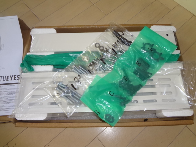 写真の通りグリーンのネジ類のビニールをカットだけしましたがボルト、ネジ類は未開封のままです。