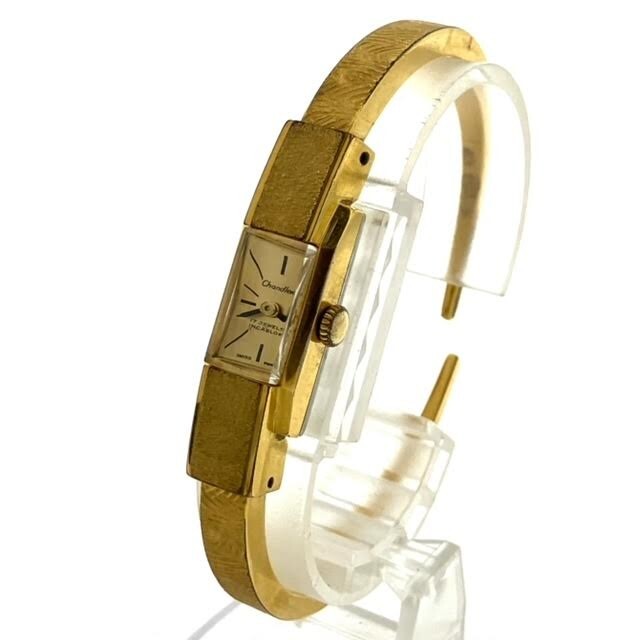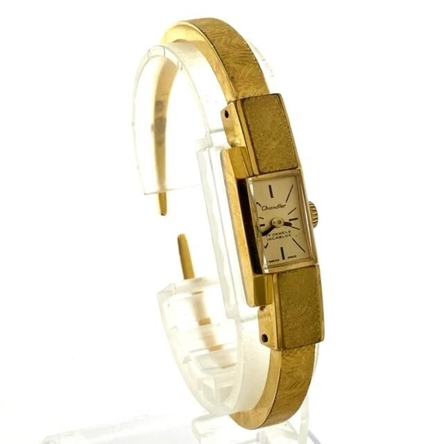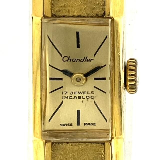 仙68【稼働】Chandler 腕時計 手巻き 17石 インカブロック アナログ スクエア チャンドラー 機械式 レディース ゴールド文字盤