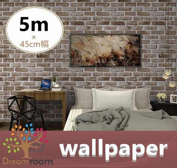 【 5m 】 3D レンガ ライトブラウン ウォールペーパー ビンテージ 石垣 ストーン 壁紙 北欧風 インテリア はがせる シール DIY
