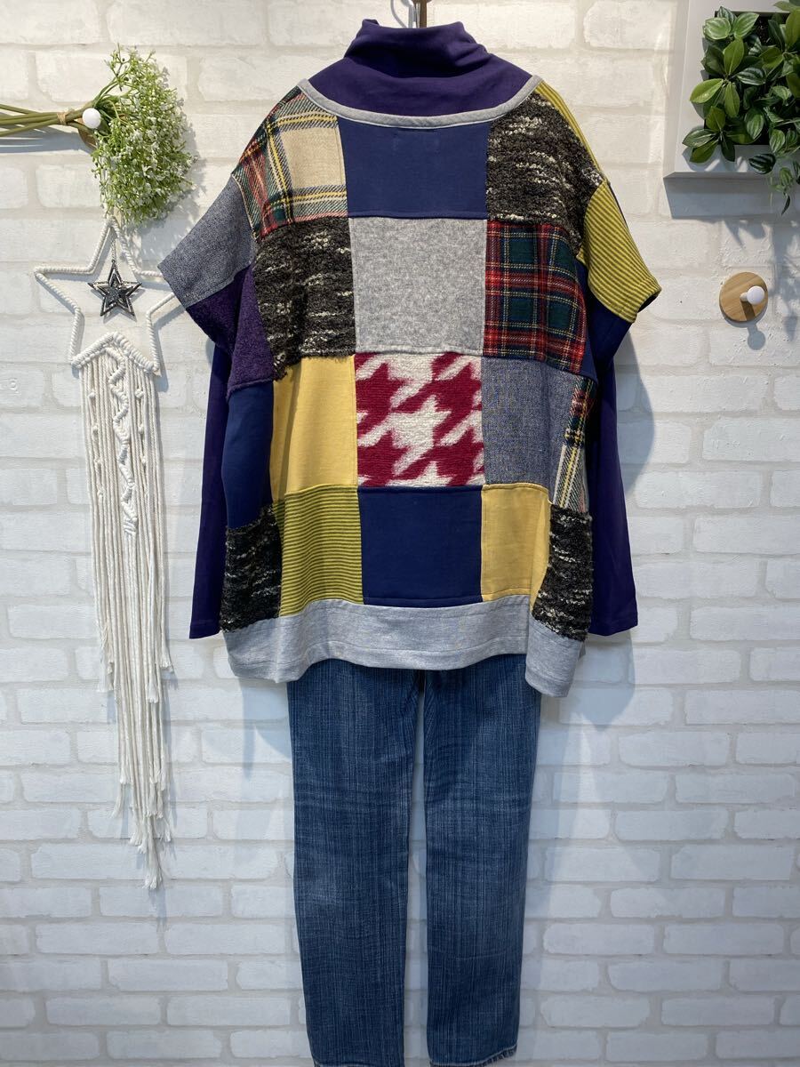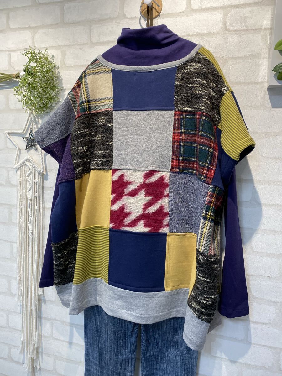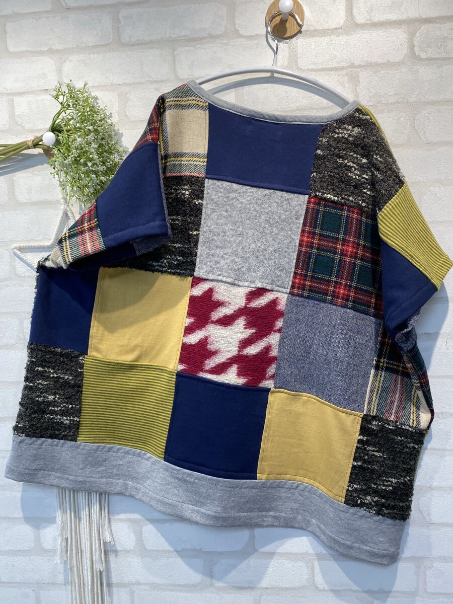ハンドメイド♪様々なニットやウール混等のランダムパッチ♪ゆったり楽ちんなプルオーバー♪