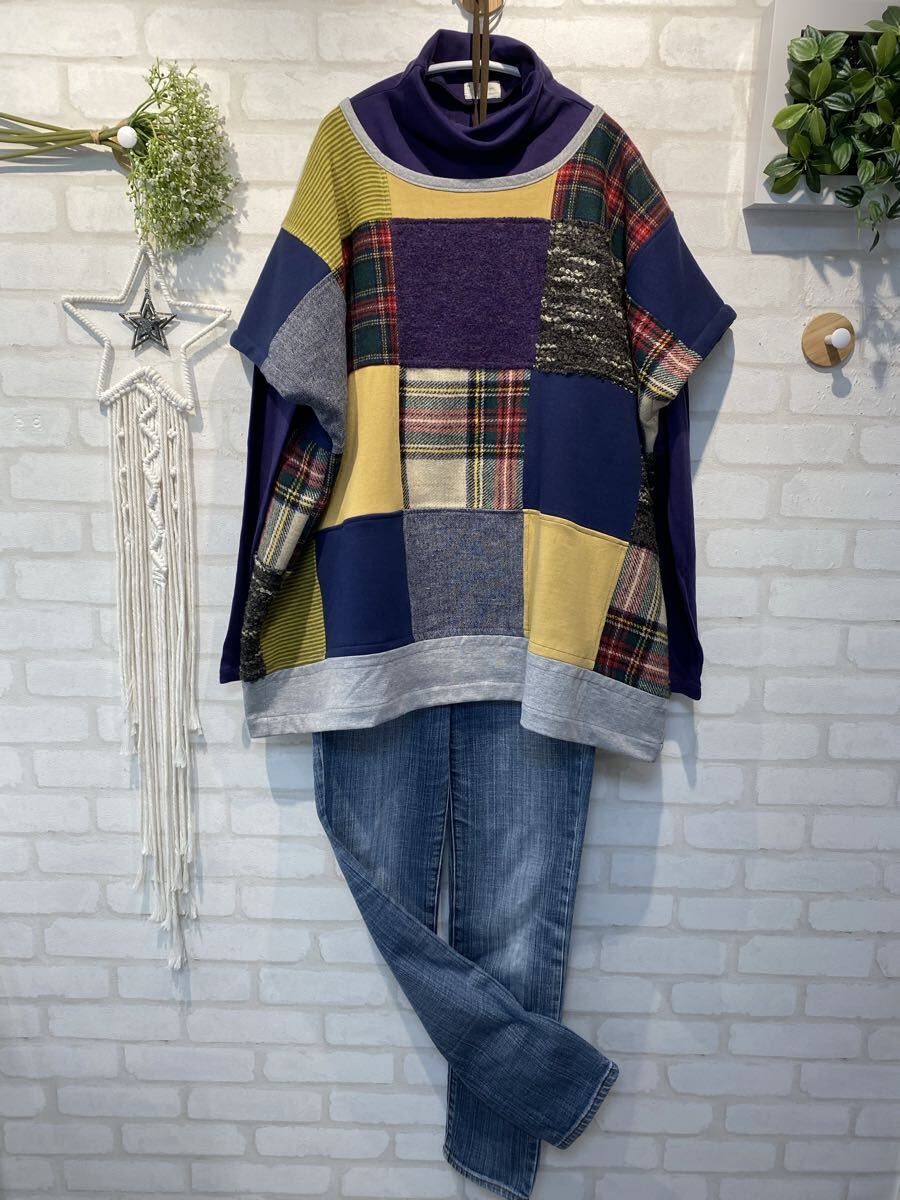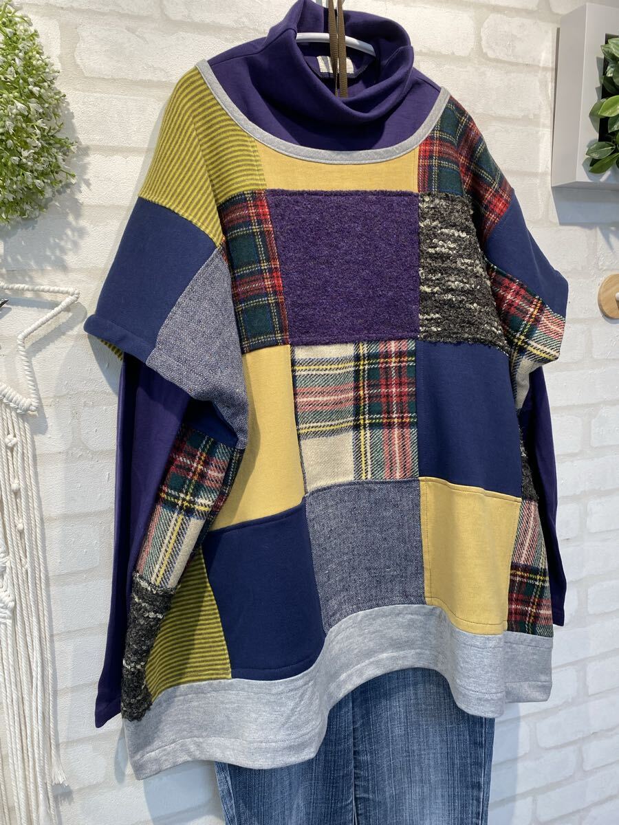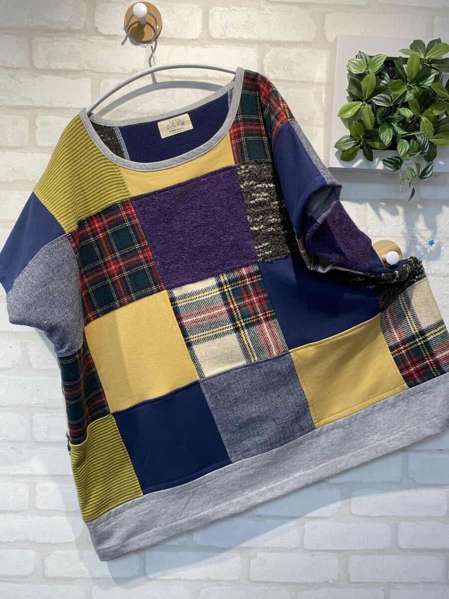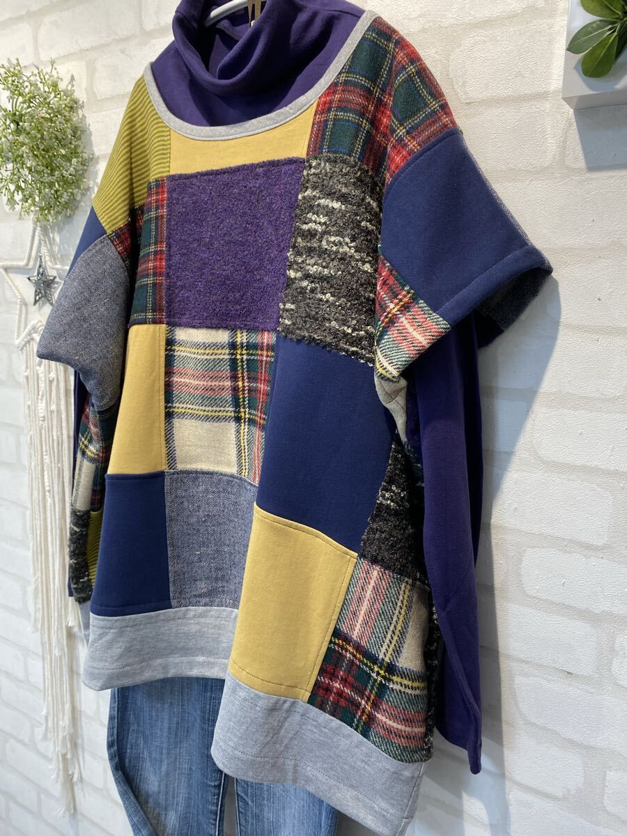 ハンドメイド♪様々なニットやウール混等のランダムパッチ♪ゆったり楽ちんなプルオーバー♪