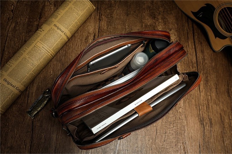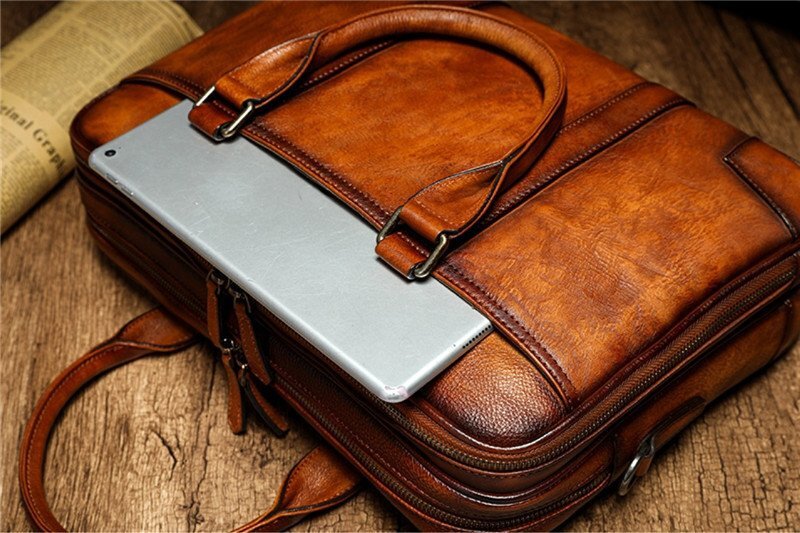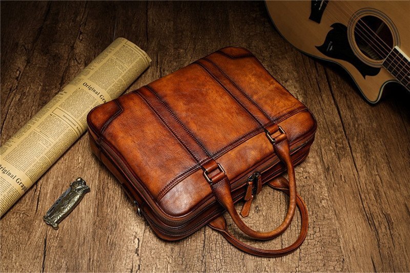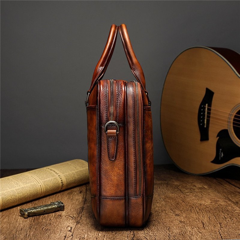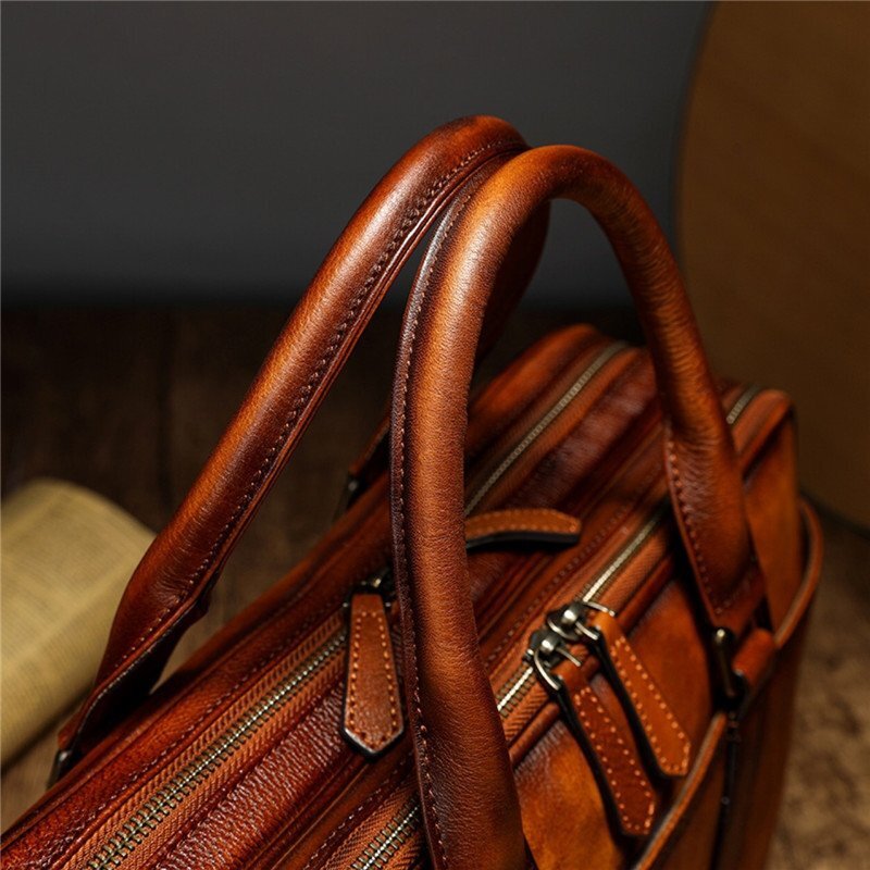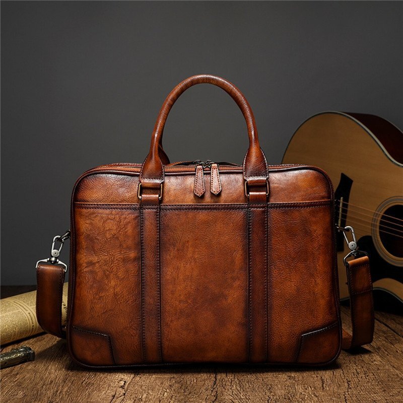 高級本革 厚手牛革 メンズバッグ ブリーフケース ビジネスバッグ 手作り トートバッグ 14PC対応 A4書類 通勤 出張 鞄