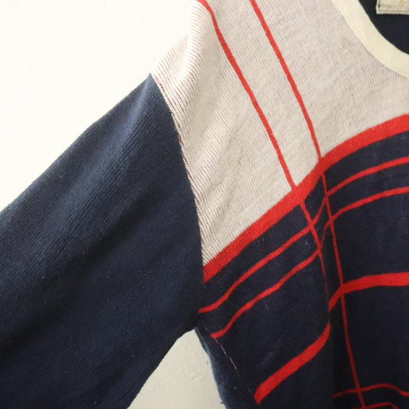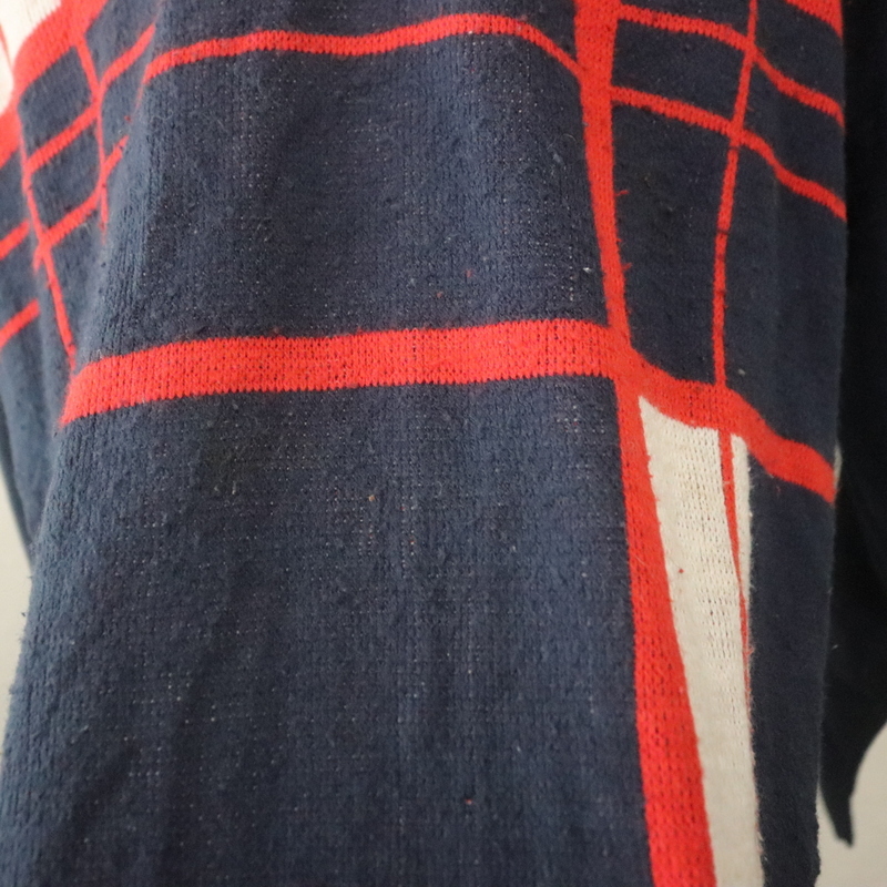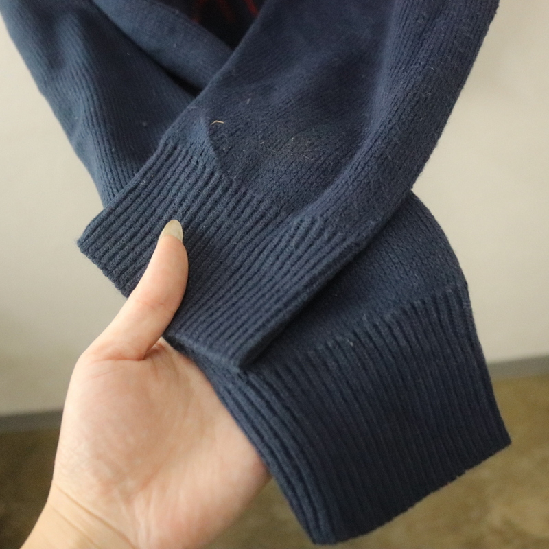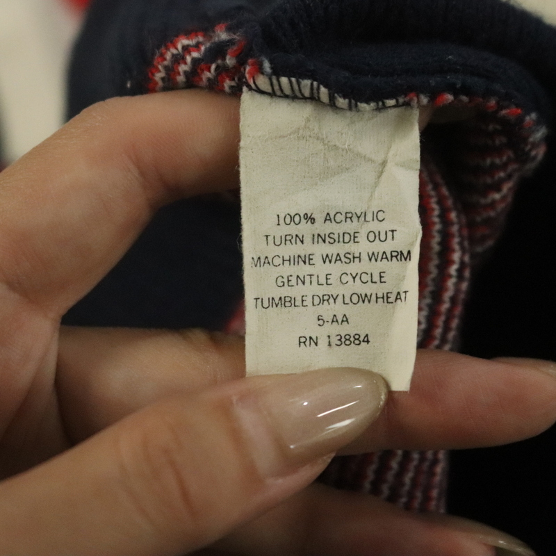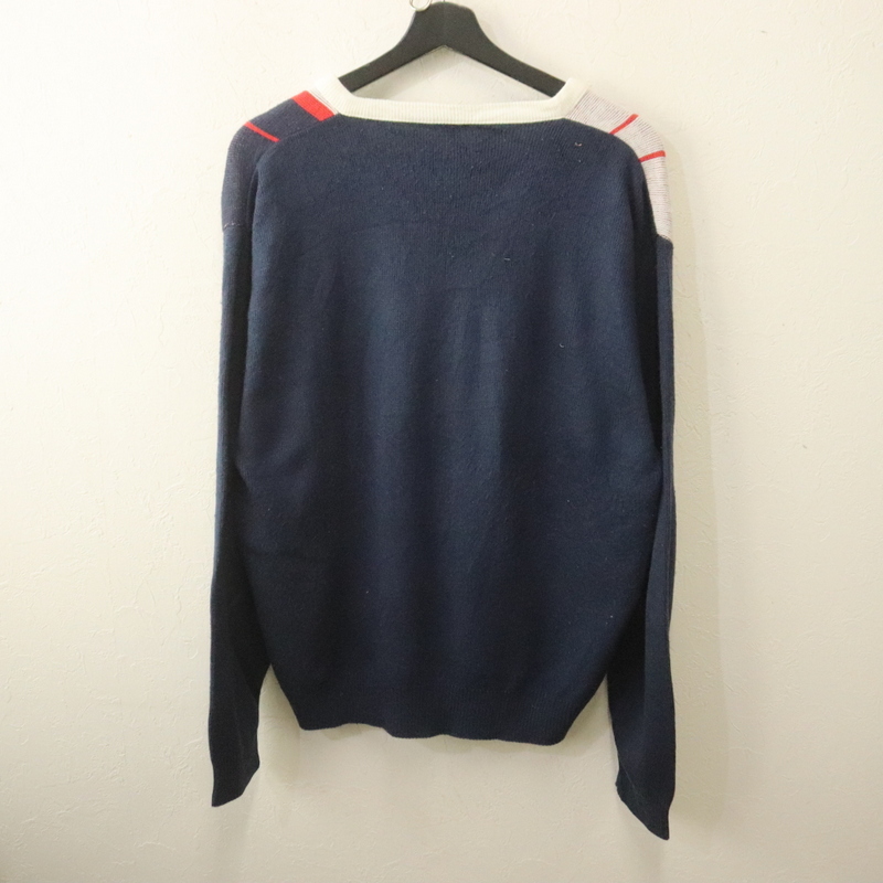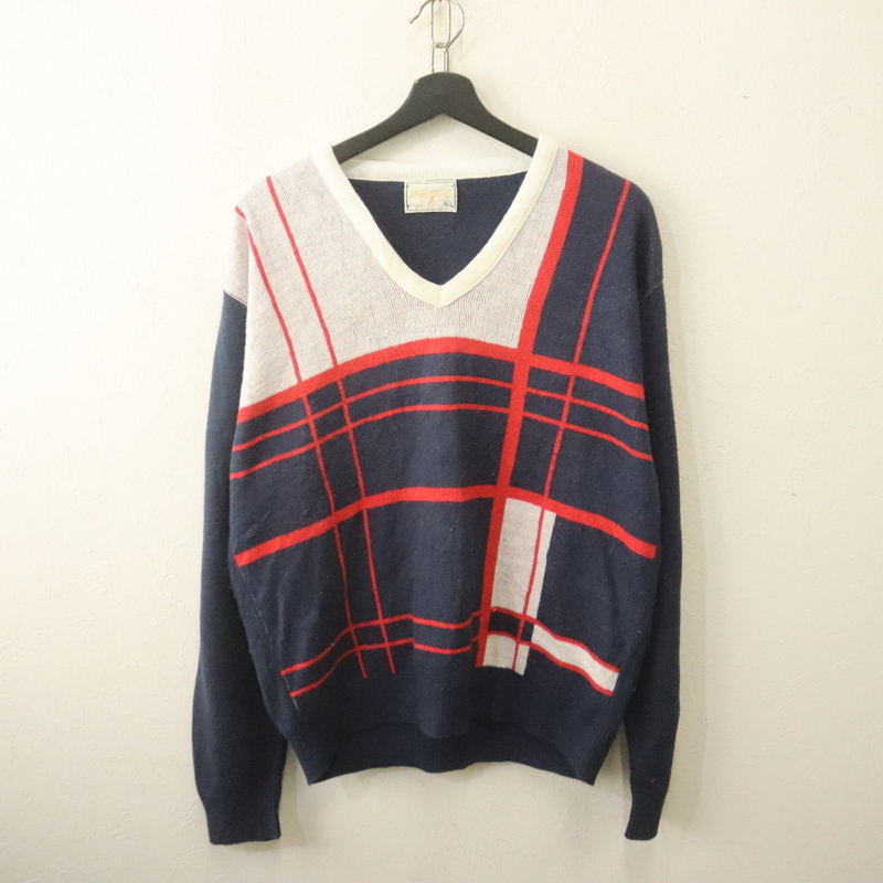 商品名 a895 80sビンテージ Hogan アクリルニットセーター USA製■1980年代製 表記Lサイズ ネイビー 紺 Vネック 柄 アメカジ ストリート 古着 激安