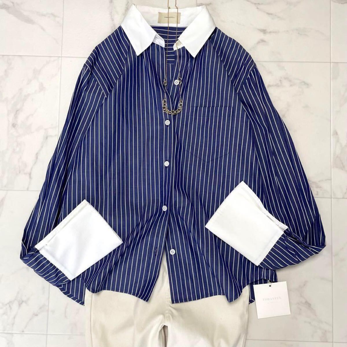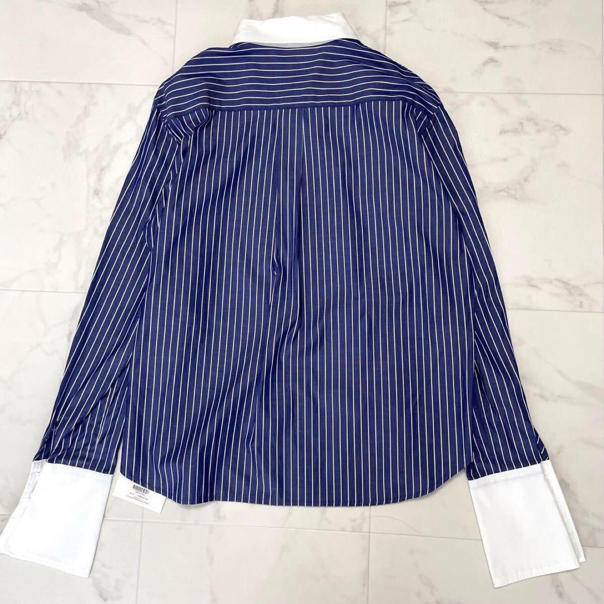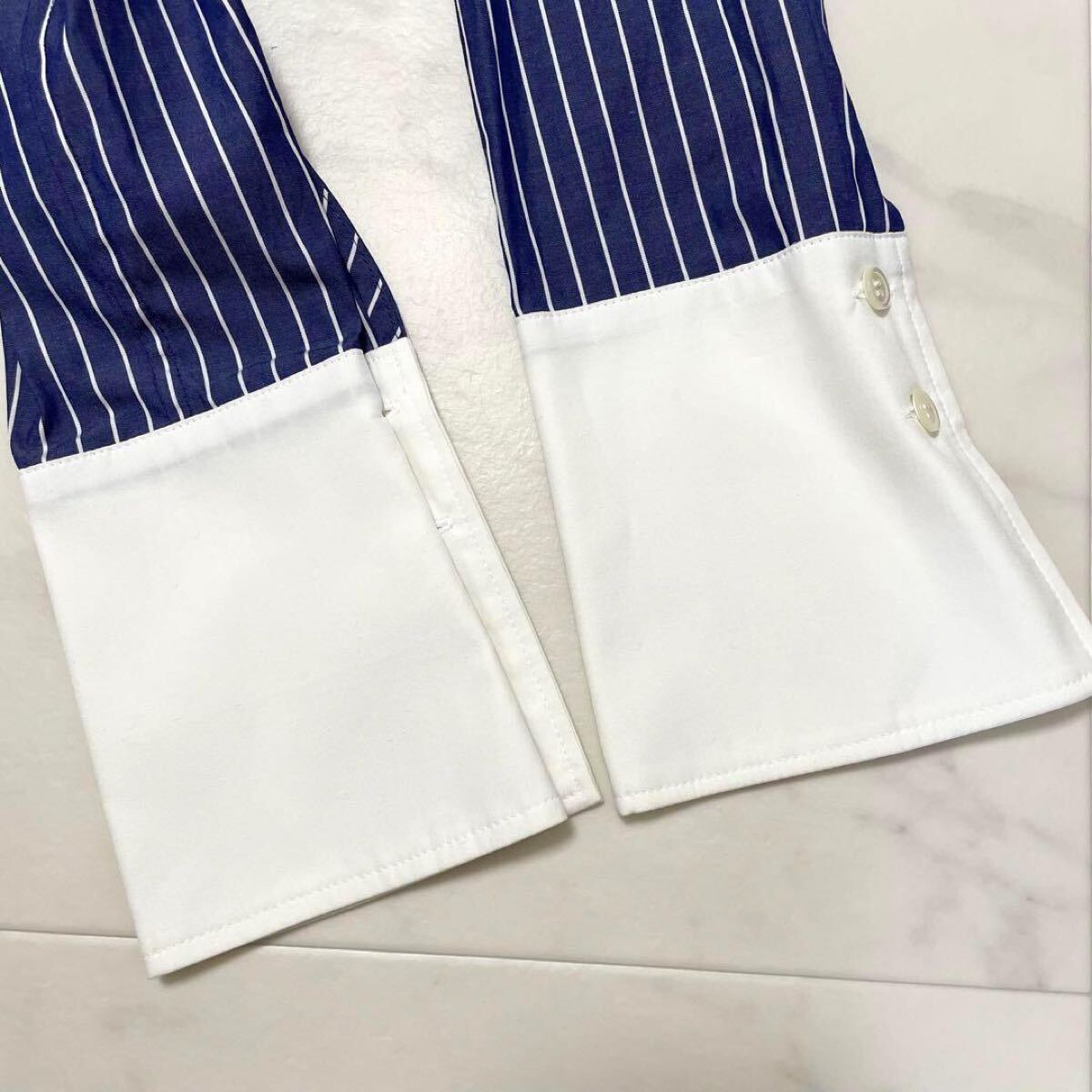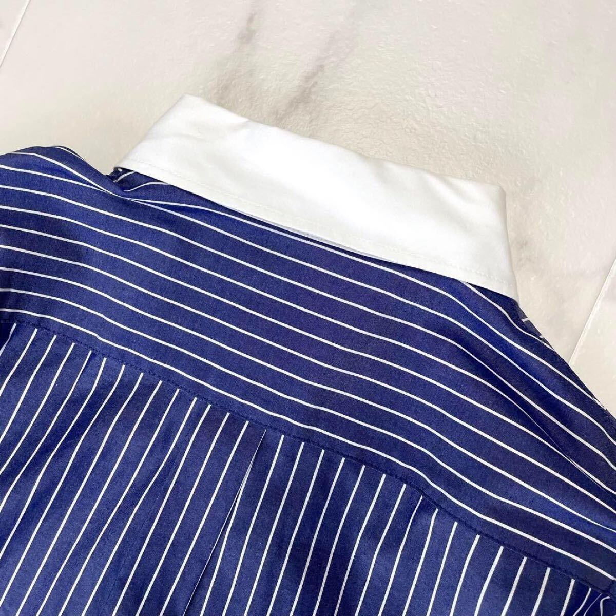 ネイビー×ホワイトのストライプが爽やかな長袖シャツ。