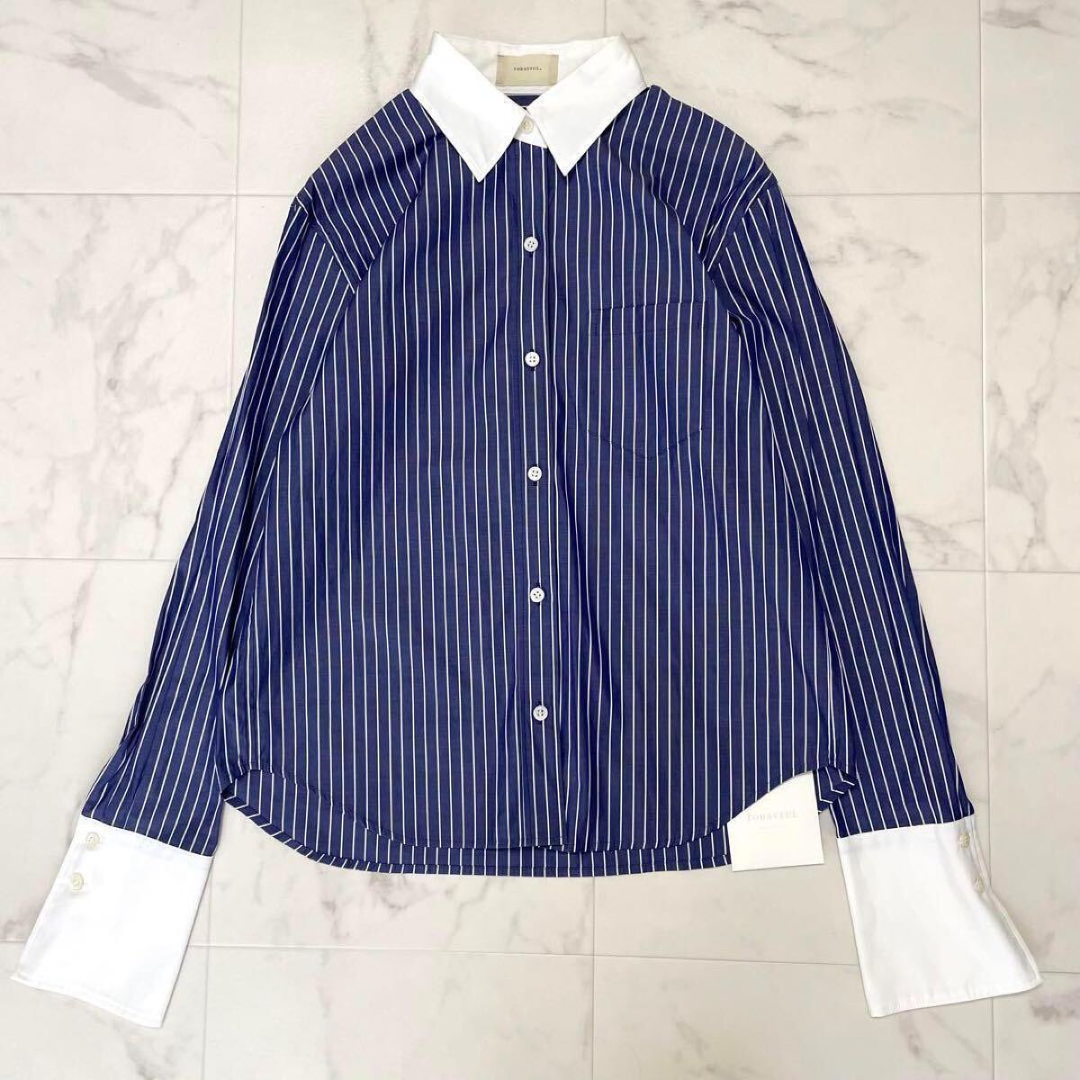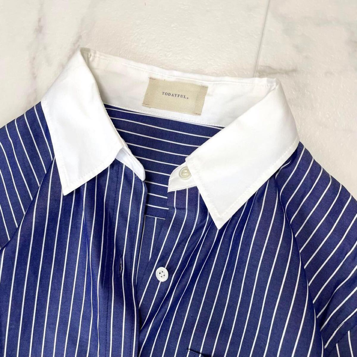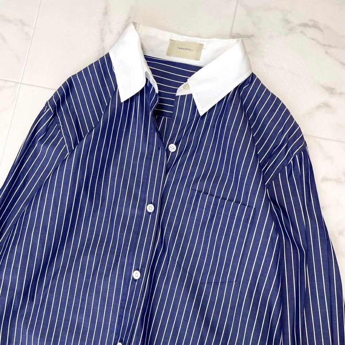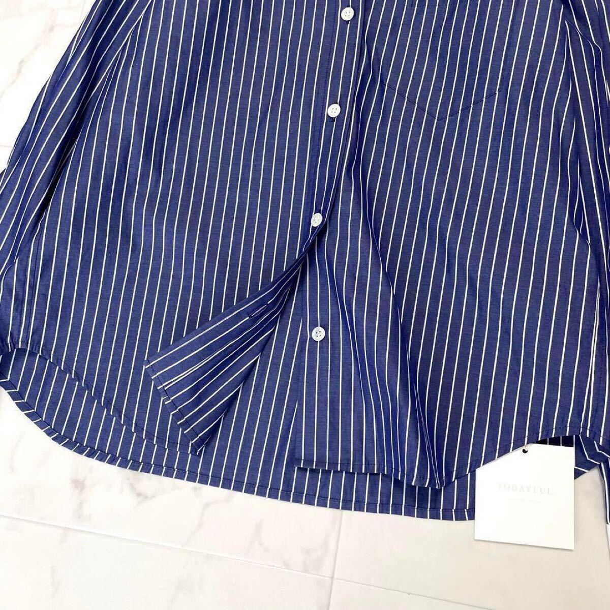 ネイビー×ホワイトのストライプが爽やかな長袖シャツ。
