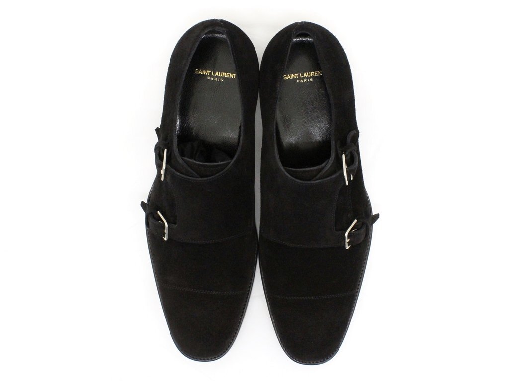 20万新品◆43=28cm◆【サンローラン】 スエードダブルモンクストラップシューズ黒