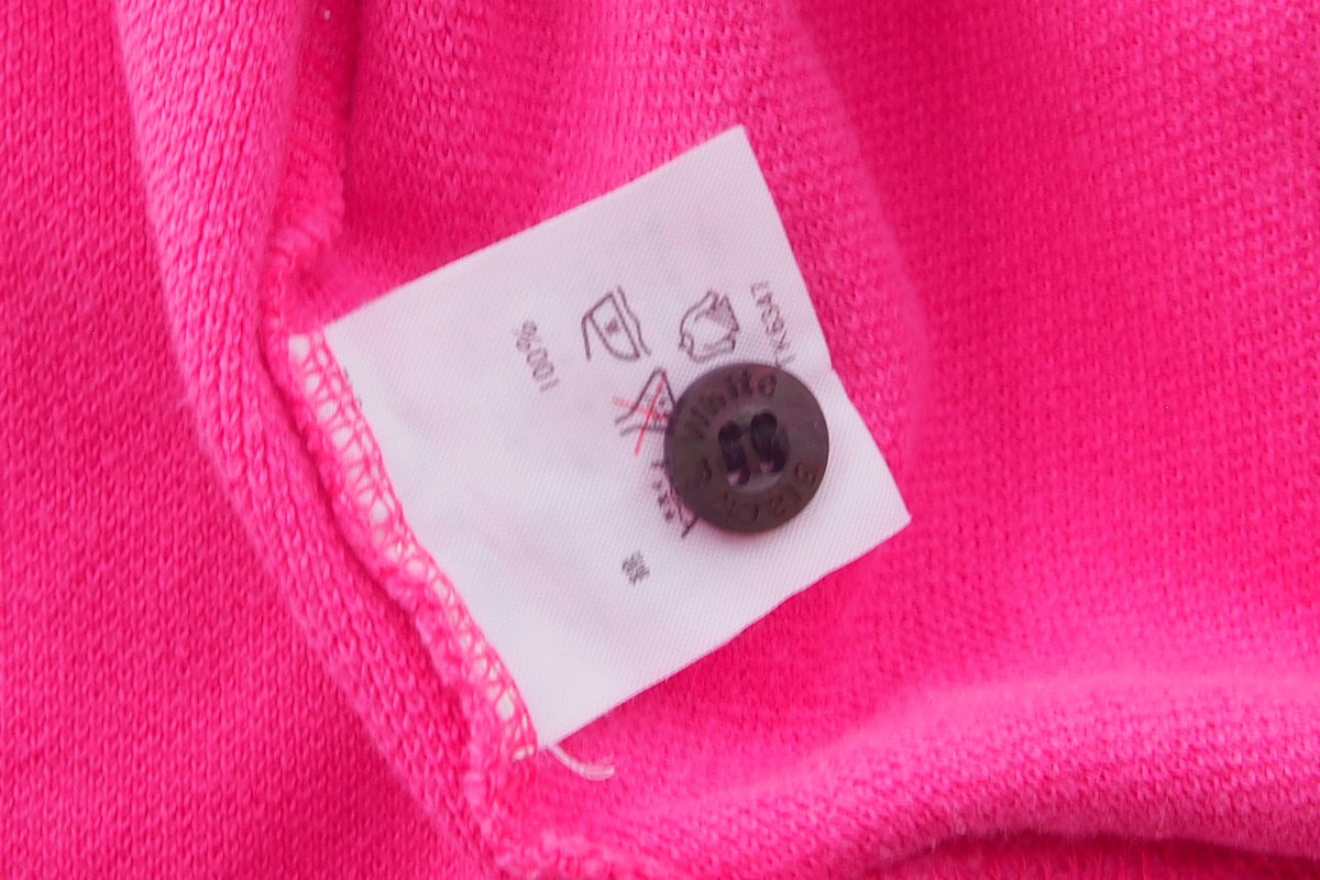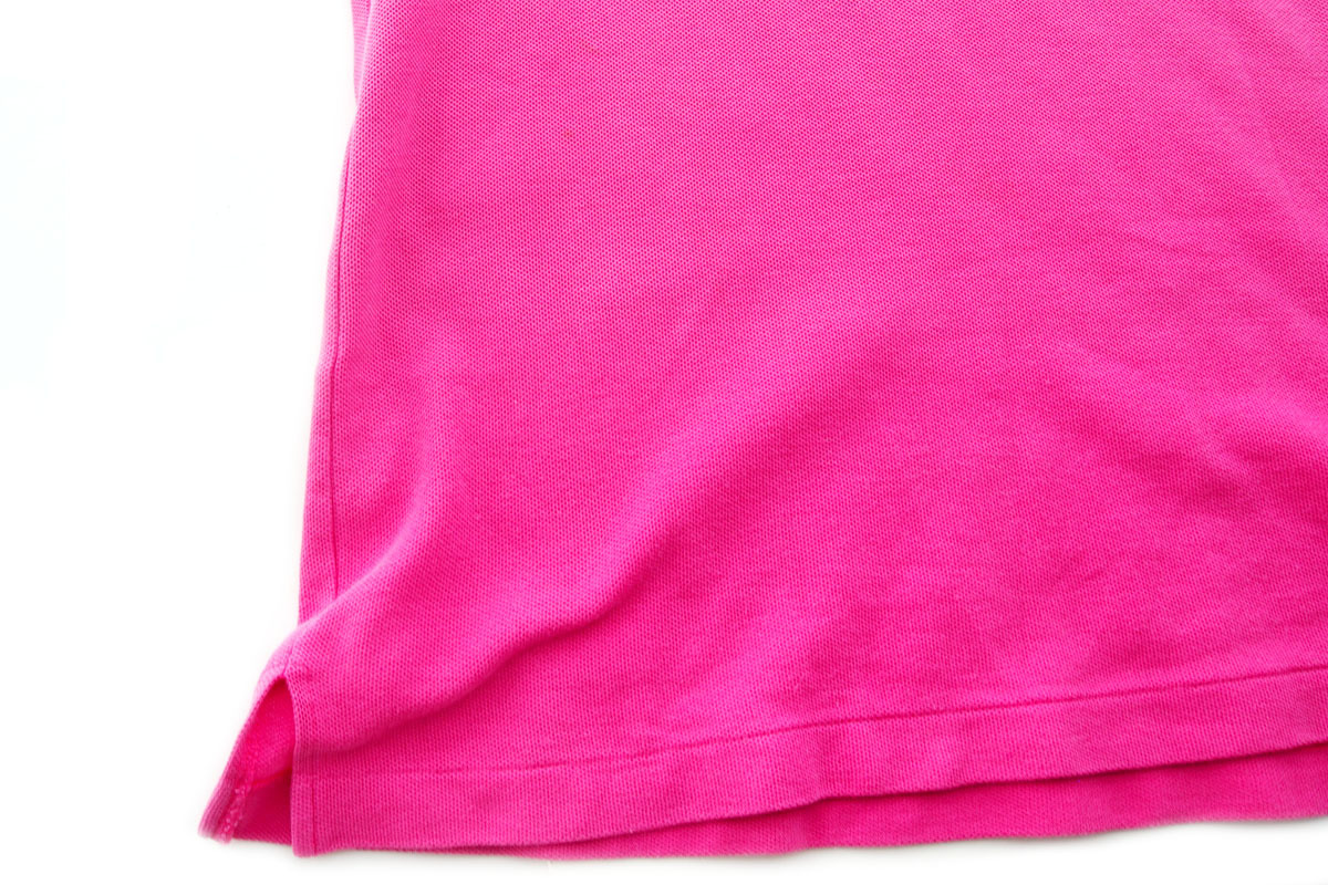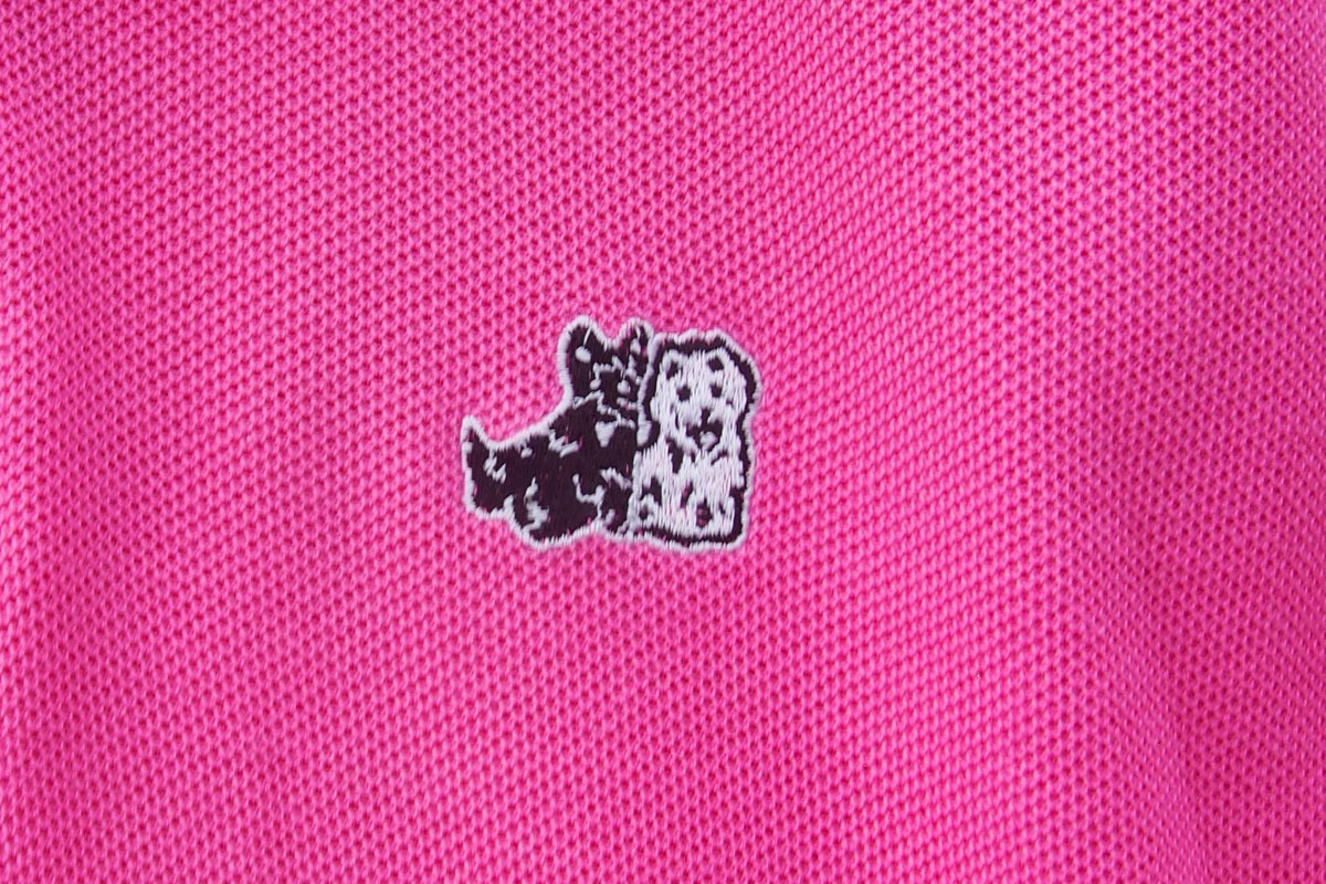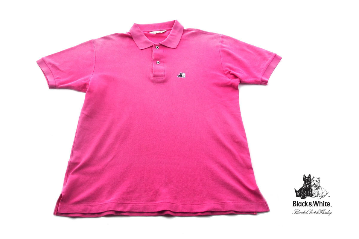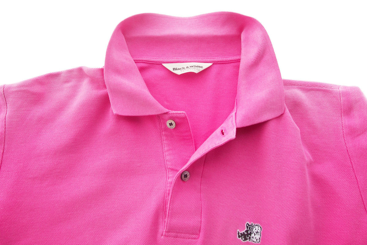 鮮やかなピンクが目を引く<ブラックアンドホワイト>の半袖ポロシャツ。