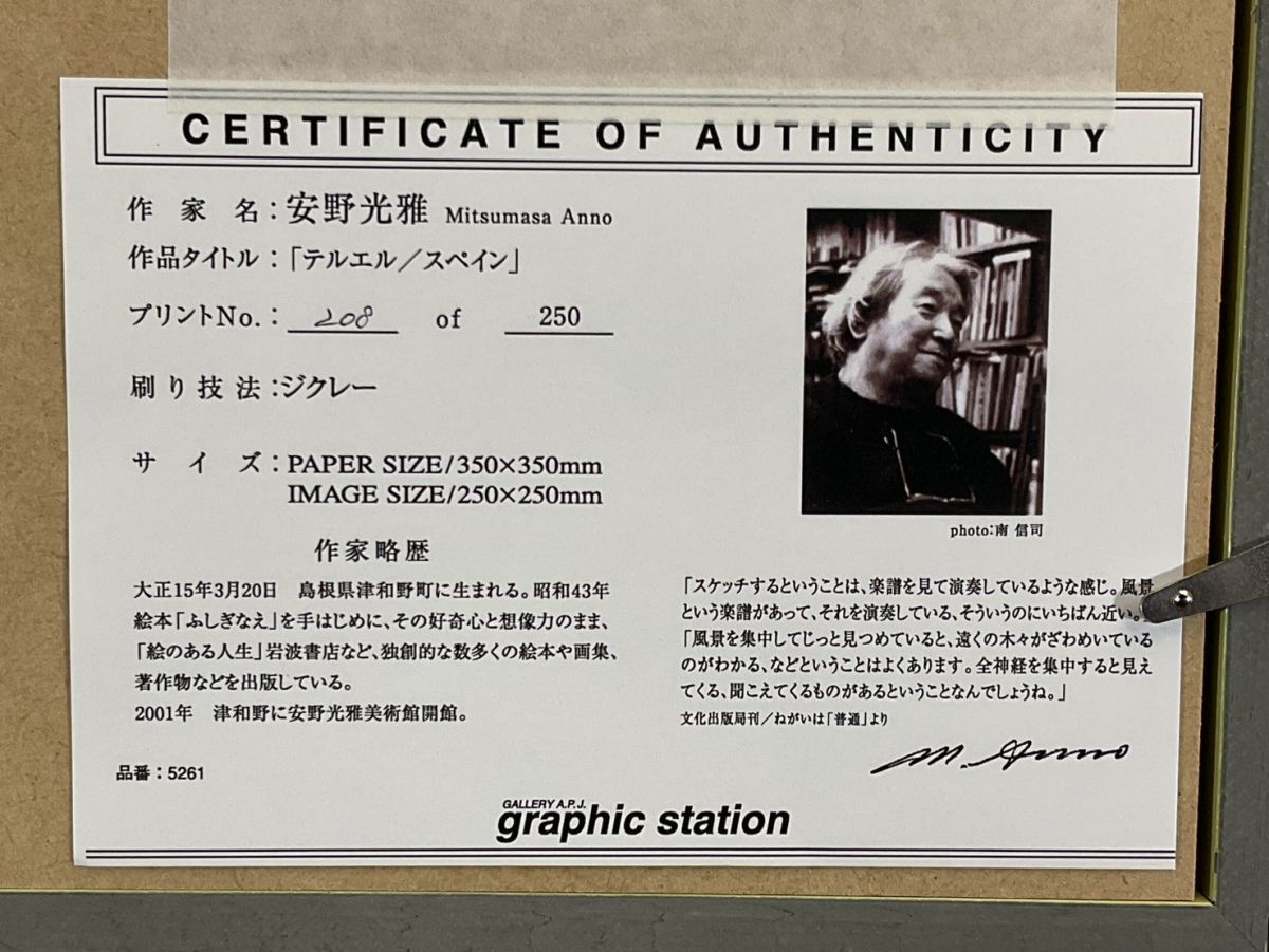真作■ジークレー■安野光雅■『テルエル/スペイン』■文化功労者 人気絵本作家 海外でも高評価 菊池寛賞 ■額付絵画