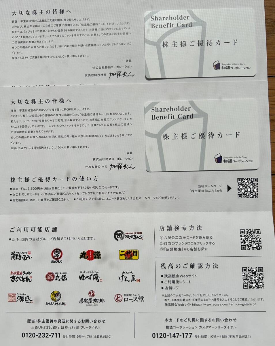 物語コーポレーションの株主優待券で、株主優待カード7,000円分です。