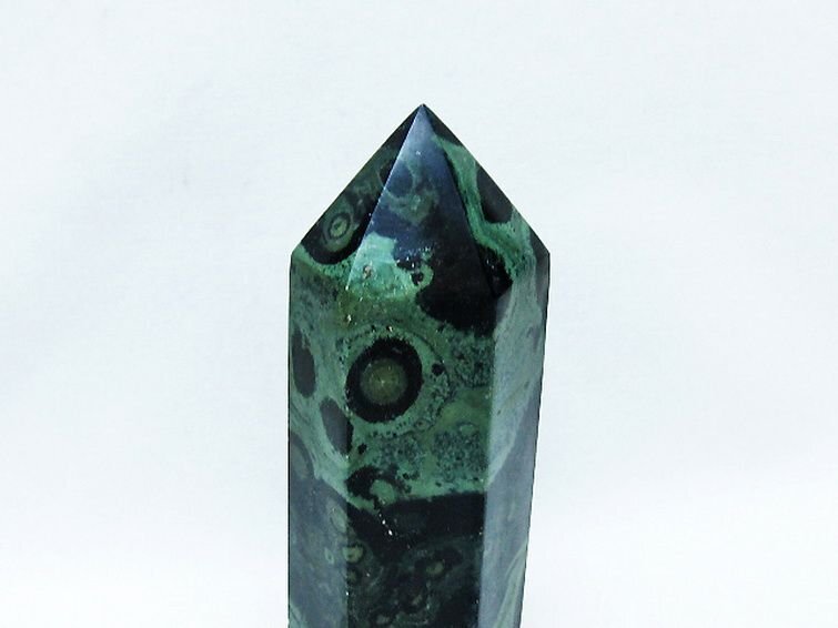 ■商品名: マラカイト 六角柱 ■商品ID: T350-1668 ■商品重量:約 380g ■商品サイズ: 高約:123mm 横約:45mm 厚約:40mm 【マラカイト(孔雀石)】 孔雀の羽のような鮮やかな緑色と独自の縞模様を持つ天然石で、マラカイトは鮮やかかつ縞模様がくっきりと見えるものほど価値が高いとされています。 産地としてはロシアのウラル山脈にあるニジニ・タギリスクの銅鉱山が最も有名で、かつては日本でも秋田県にある荒川鉱山などで良質なマラカイトが産出されていました。 マラカイトの歴史は古く、古代エジプトでは紀元前3000年頃から顔料や化粧品の材料として用いられていたといわれています。 かの有名なクレオパトラも魔除けにマラカイトの粉末を油で溶いたものをアイシャドウとして使っていたという記録も残っています。 マラカイトは強い邪気払いのエネルギーを持ち、災いを事前に察知する能力を高めるとされているのでビジネス面でのお守りとして心強いサポートが得られるでしょう。 また精神と肉体の両方にヒーリング効果をもたらしてくれますので、ストレスで精神的に疲れてしまったり、しっかりとした休息が取れずに体力的に辛い時に身に着けることをおすすめします。 ⇒ マラカイトをもっと詳しく ◆ワンポイント情報 マラカイトは硬度が3.6~4と低いため衝撃を与えると割れてしまうので取り扱いには十分注意しましょう。 また、水分や塩分にも弱いので身に着けた後は柔らかい布で拭きとり、こまめにケアをするようにしてください。 |