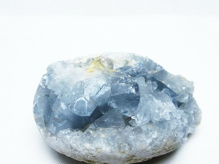 ■商品名: セレスタイト天青石原石 ■商品ID: T756-5007 ■商品重量:約 70g ■商品サイズ: 高約:50mm 横約:32mm 厚約:30mm 【セレスタイト(天青石)】 セレスタイトは和名で「天青石」と呼ばれるように、晴れ渡った空を思わせる爽やかな青色が美しい石です。 「清浄・博愛・休息」を象徴する強力な浄化効果とヒーリング能力を持ち、心身にかかるストレスや苦痛を癒すとされています。 不安やストレスで高ぶった精神を静めて深い安らぎと心身の浄化をもたらしてくれますので、原石などを寝室に置くことで安眠効果が期待できます。 また、相手視点に立って物事を考えられる思考力をもたらし人間関係を円滑にする効果もありますので、恋人や夫婦円満のお守りとしてもオススメです。 イタリアのシチリア島で発見されたセレスタイトですが、現在イタリアでは枯渇状態になってしまい採掘が困難なようです。 そのため現在では主要な産地としてマダガスカルが注目され、マダガスカル産のセレスタイトは清涼感を感じる透明度のある水色が特徴です。 ⇒ セレスタイトをもっと詳しく ◆ワンポイント情報 セレスタイトは非常に柔らかく、母岩が脆い場合があるため、流水につけると石が壊れてしまう場合があります。クリスタルを用いたパワーチャージや、セージや月光浴がお勧めです。 |