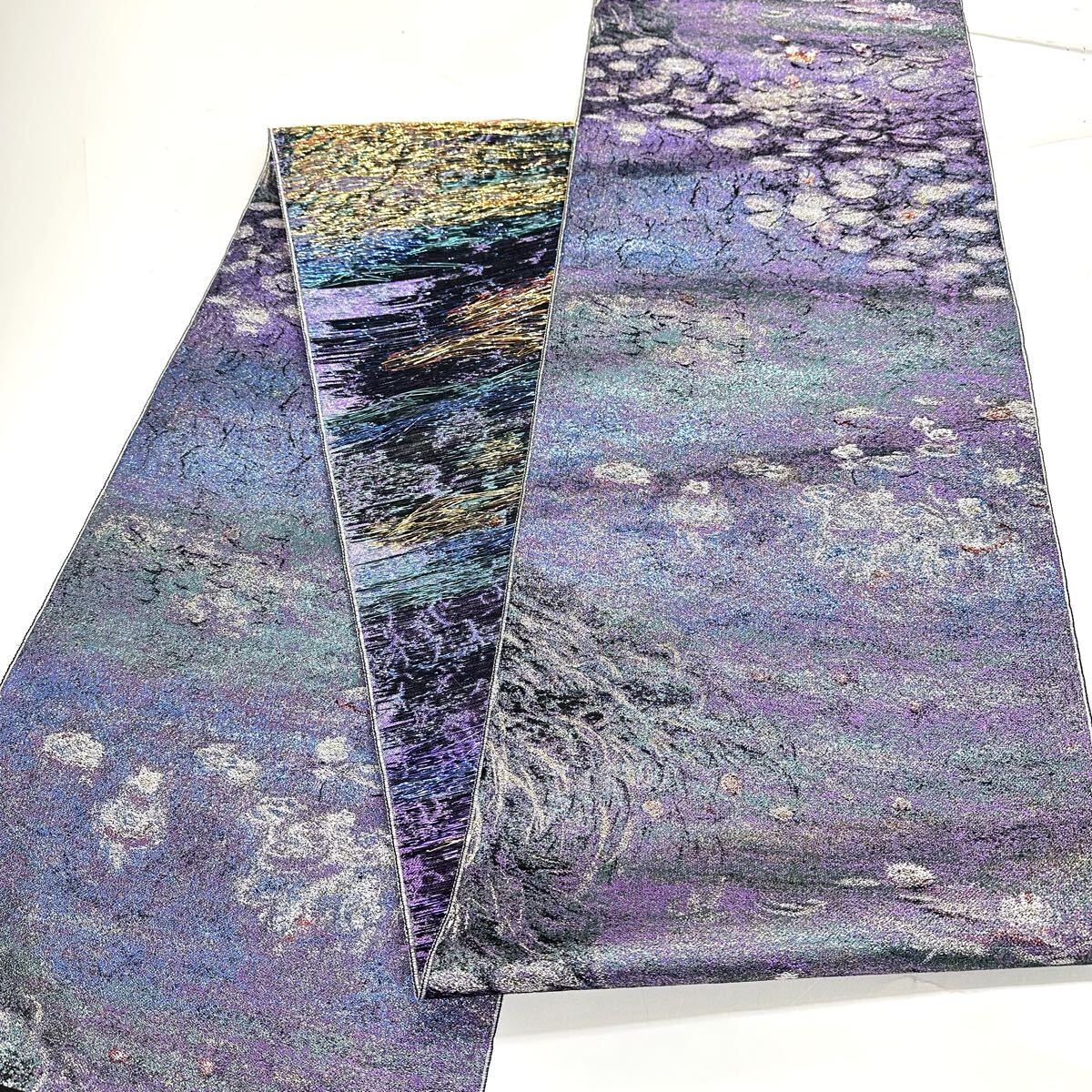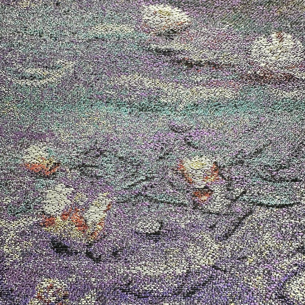 【七福】豪華 逸品 モネ 睡蓮 スイレン 西陣織高級全通袋帯 正絹 全通 袋帯 未仕立て 反物 金銀糸 ラメ 新品 長さ 約482cm