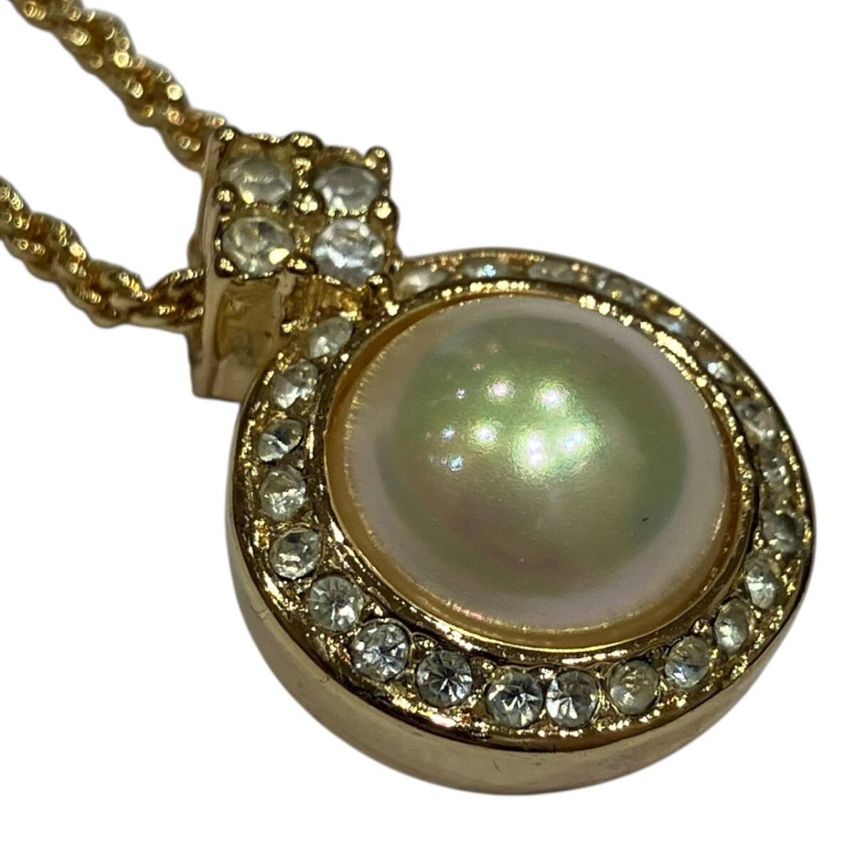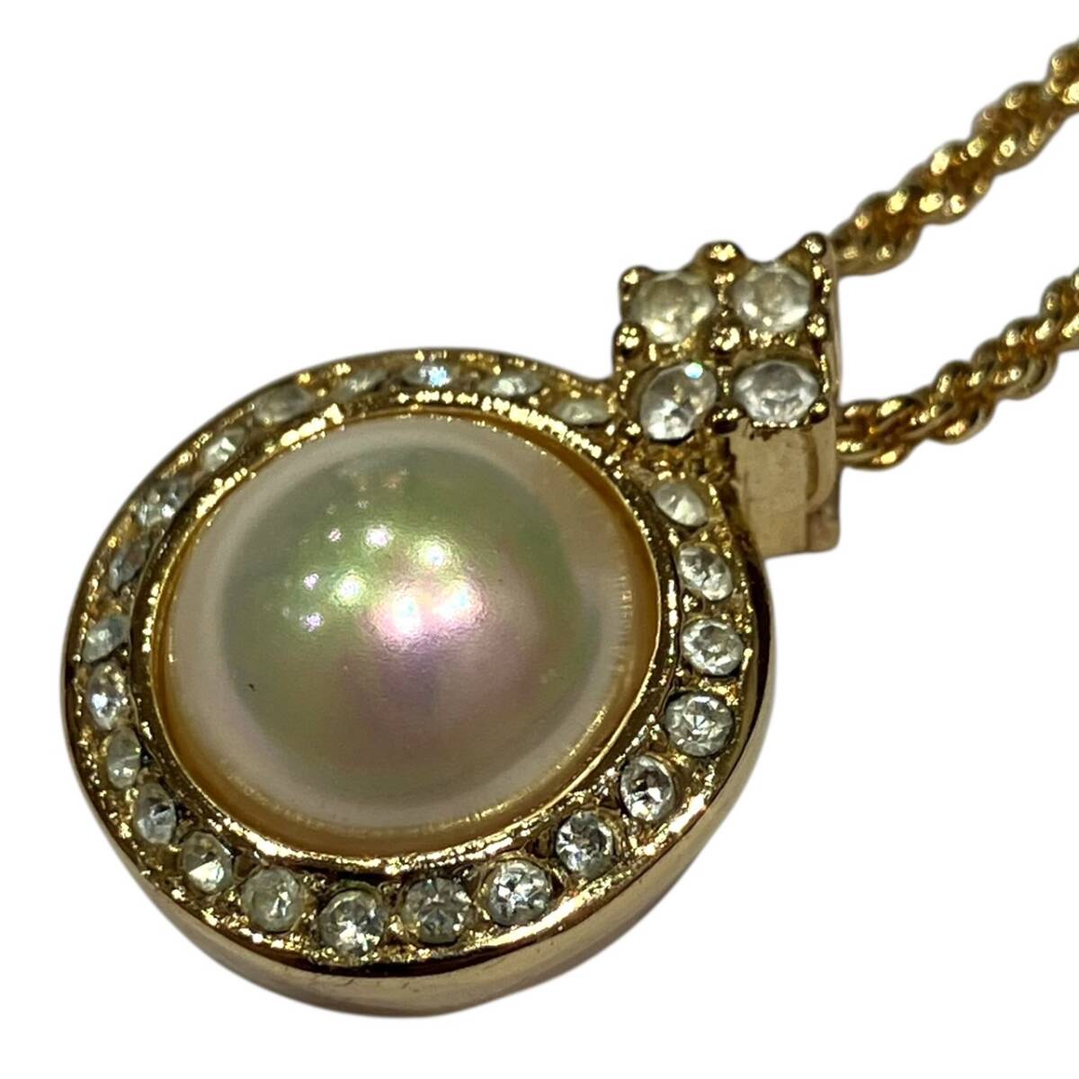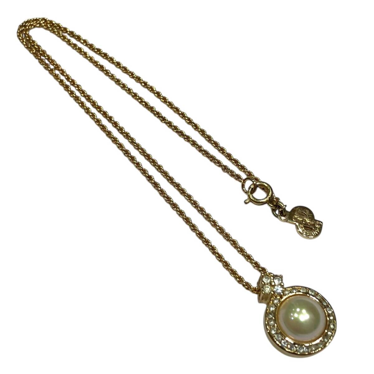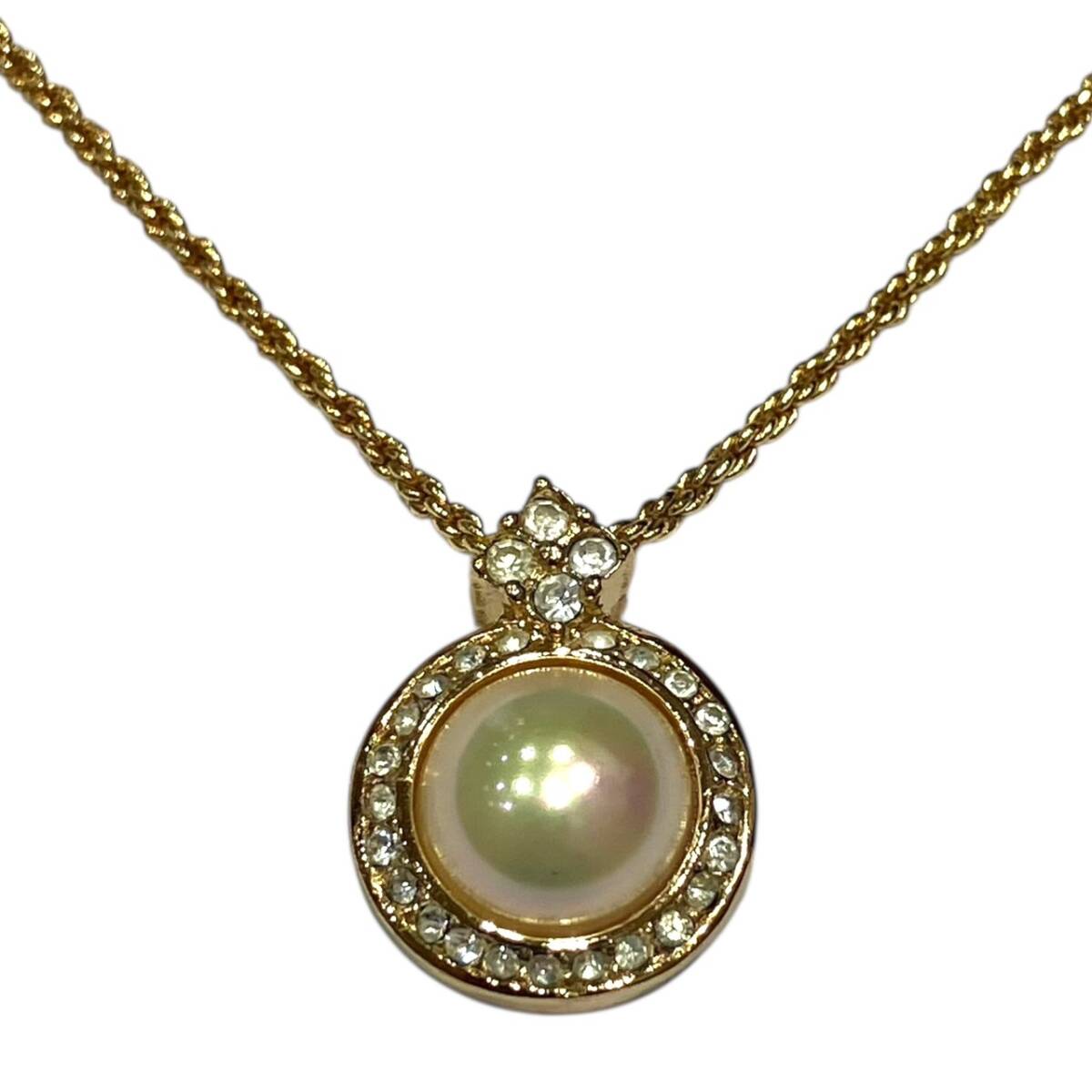 Dior ディオール ヴィンテージ フェイクパール ラインストーン ネックレス ゴールドカラー |