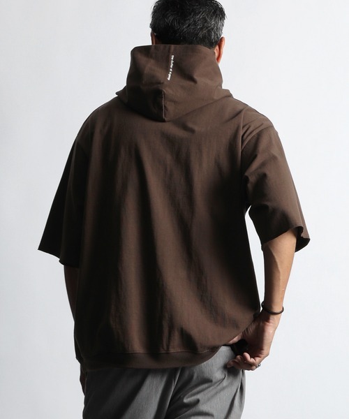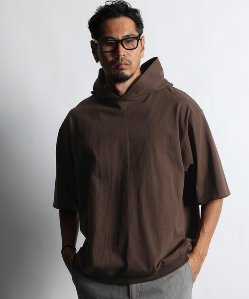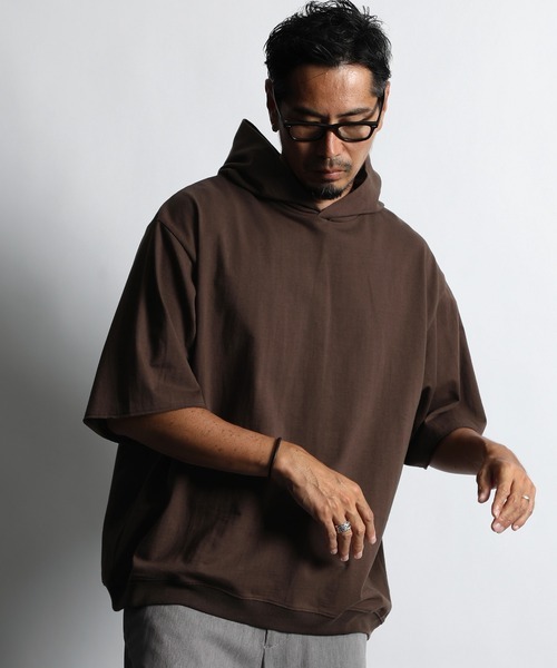 【●公式コメント●"Tシャツ感覚で着回しができる半袖パーカー"【生地】独自に開発した14番糸(8oz)という太糸で編んだ天竺素材を使用しています。中肉厚な生地で透けもなく、程よくカッシリとしたタフな素材感が、素朴だけど高級感のある仕上がりとなっています。【デザイン・ディテール】素材の特性を活かした、オーバーサイズのルーズシルエットモデル。ショルダーラインを落としカットオフで5分丈に仕上げた袖、細リブ仕様の裾、ゆとりのある身幅など、リラックスサイジングで着心地とデザイン性を兼ね備えたトップスです。その他、ワンポイントロゴをフードに使用しており、ミニマライズされたクリーンな表情が印象的なデザインとなっています。】 |