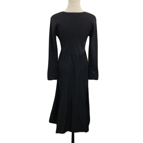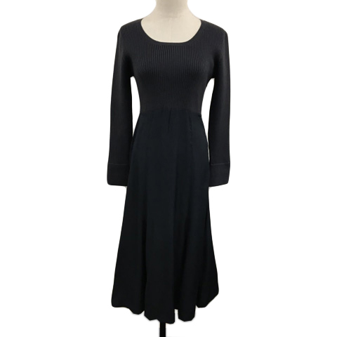 ナチュラルビューティーベーシック NATURAL BEAUTY BASIC ワンピース フレア ロング 切替 ニット リブ 無地 長袖 PS グレー レディース