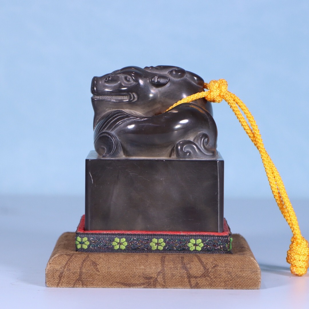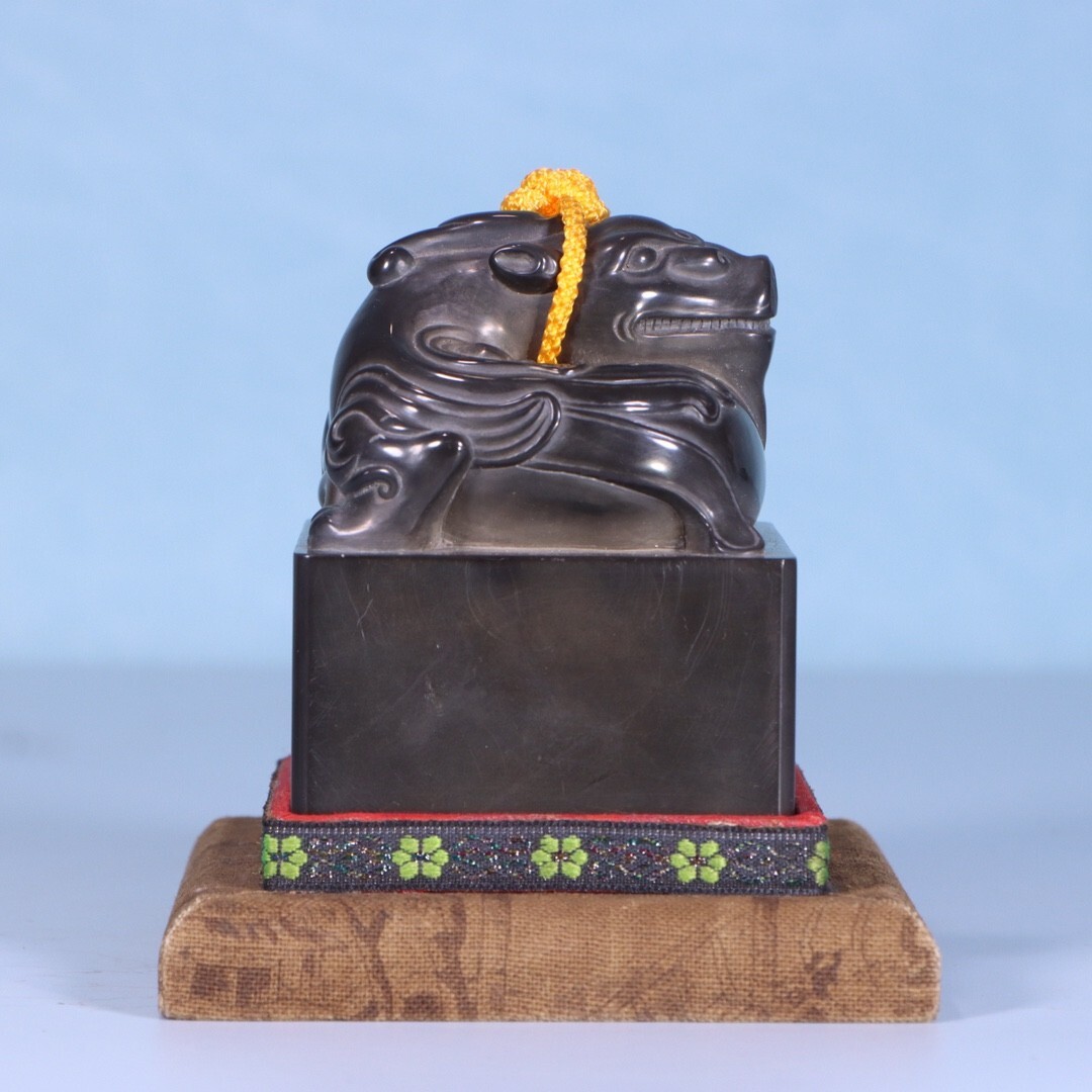 「清 乾隆十五年内務府監製 老寿山石 月尾石彫り 盤龍鈕印章」極細工 擺件 古賞物 中国古美術 旧蔵出