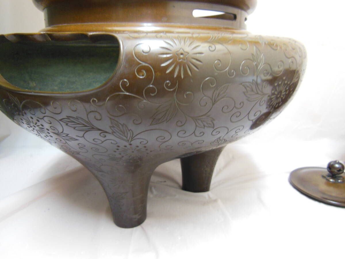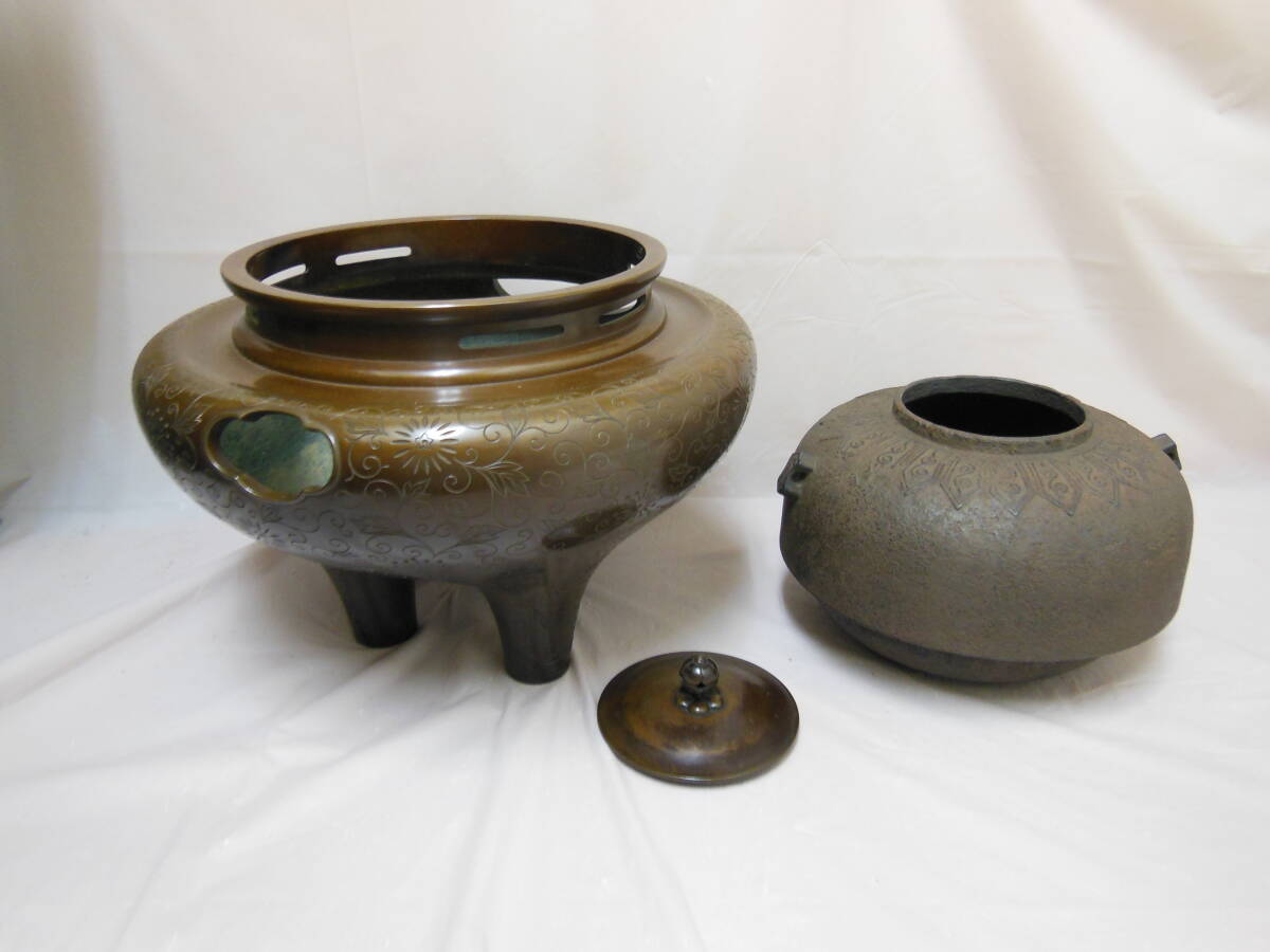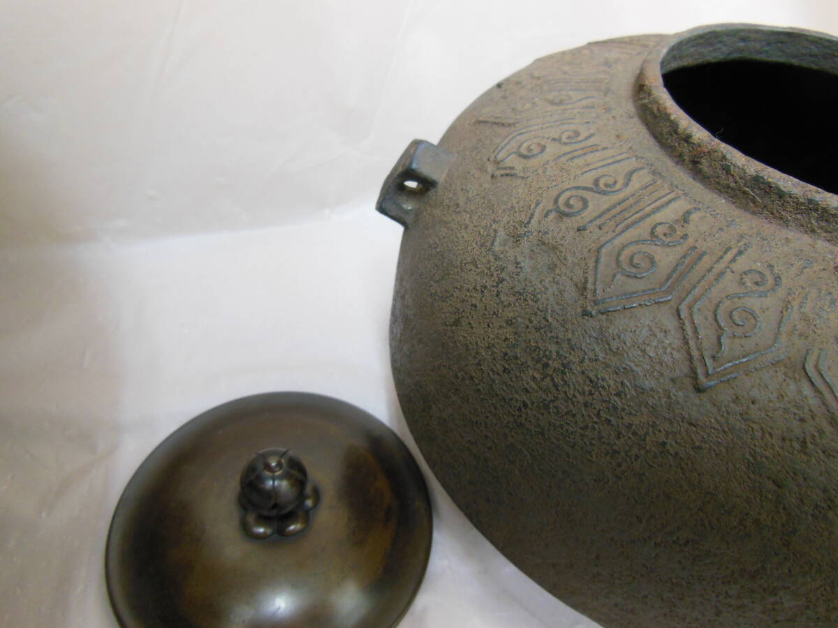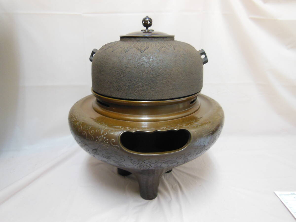 45 松尾流 不染斎 書附 忠保 作 半古斎好 菊彫 唐銅 朝鮮風炉釜