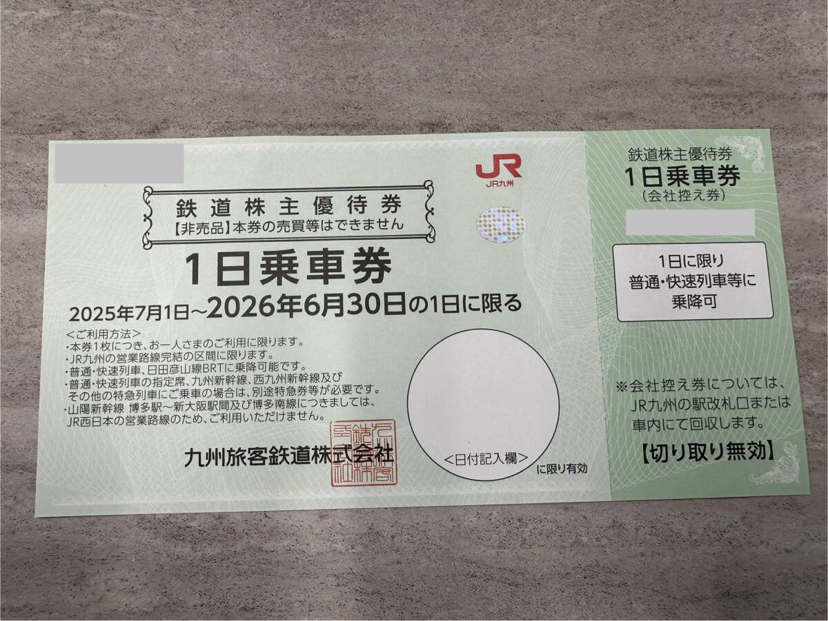 九州鉄道株主優待券(1日乗車券)×1枚の出品です。