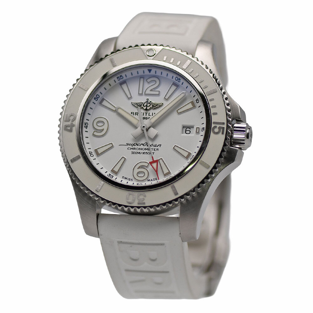 ブライトリングを代表するダイバーズコレクション『スーパーオーシャン』が入荷しました。クロノメーター認定の“ブライトリング17”搭載しています。爽やかな白文字盤のスポーツウォッチです。 |