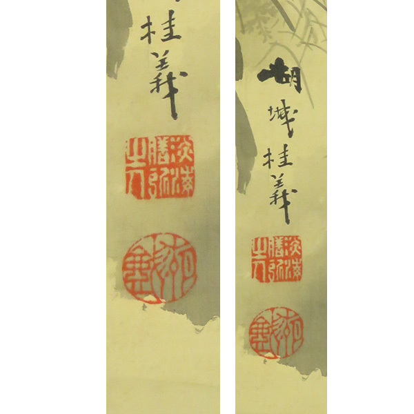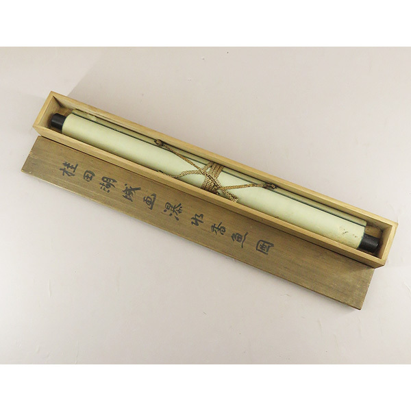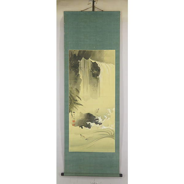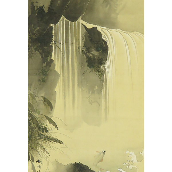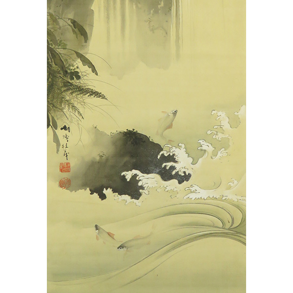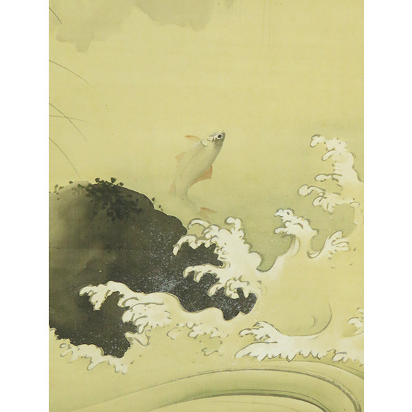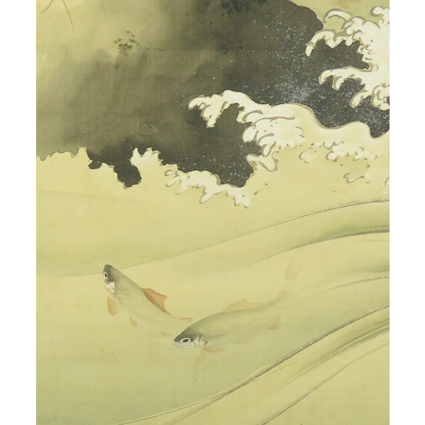 絹本淡彩 瀑水香魚図。印刷ではありません。